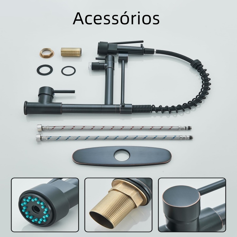 🥳Bem-vindo à loja Louis, siga a loja para obter mais cupons 🎟️ 🎟️Se você tiver alguma dúvida sobre o produto, deixe uma mensagem para o atendimento ao cliente, que responderemos prontamente! 🚚 Empresa brasileira local com envio rápido! ⭐️Destaques: 【Torneira de cozinha multifuncional】Torneira retrátil, válvula de cerâmica de alta qualidade. Seguro, confiável e durável. 【Gaveta de dupla função】Pulverizador de torneira de pia de cozinha --- Fluxo aerado e funções potentes de limpeza e enxágue, pode ser pausado no modo multitarefa para evitar respingos, fornece pressão de água estável e limpeza fácil. 【Fácil de operar】Bico giratório de 360 graus de arco alto para acesso total à pia, pulverizador retrátil para evitar respingos. Alça única para controle fácil de água quente e fria e vazão. 【Fácil de limpar】A torneira de cozinha preta fosca e o design de transição de superfície evitam que manchas de sujeira/água grudem na superfície da torneira, basta usar um pano para limpar a torneira, o que é suficiente para o uso diário. Temperatura máxima da água: 100°C. Cartucho Cerâmico de alta performance (500.000 ciclos). Pressão Mínima de água recomendada: 3 mca. Pressão Máxima de água Recomendada: 40 mca. Furação da Bancada: 32 mm. 🔶Parâmetros de especificação: Material: Corpo de aço inoxidável + núcleo de válvula de cerâmica Cor: prata, preta.ouro Bitola: 1/2 Altura: 48cm Distância horizontal da base da torneira até a saída de água principal: 21cm Altura da base até a saída de água principal: 9.5cm Diâmetro da base: 8cm 📦️Itens Inclusos: 1*Torneira Banheiro 2*mangueira 1*1 kit Corrigindo acessórios
