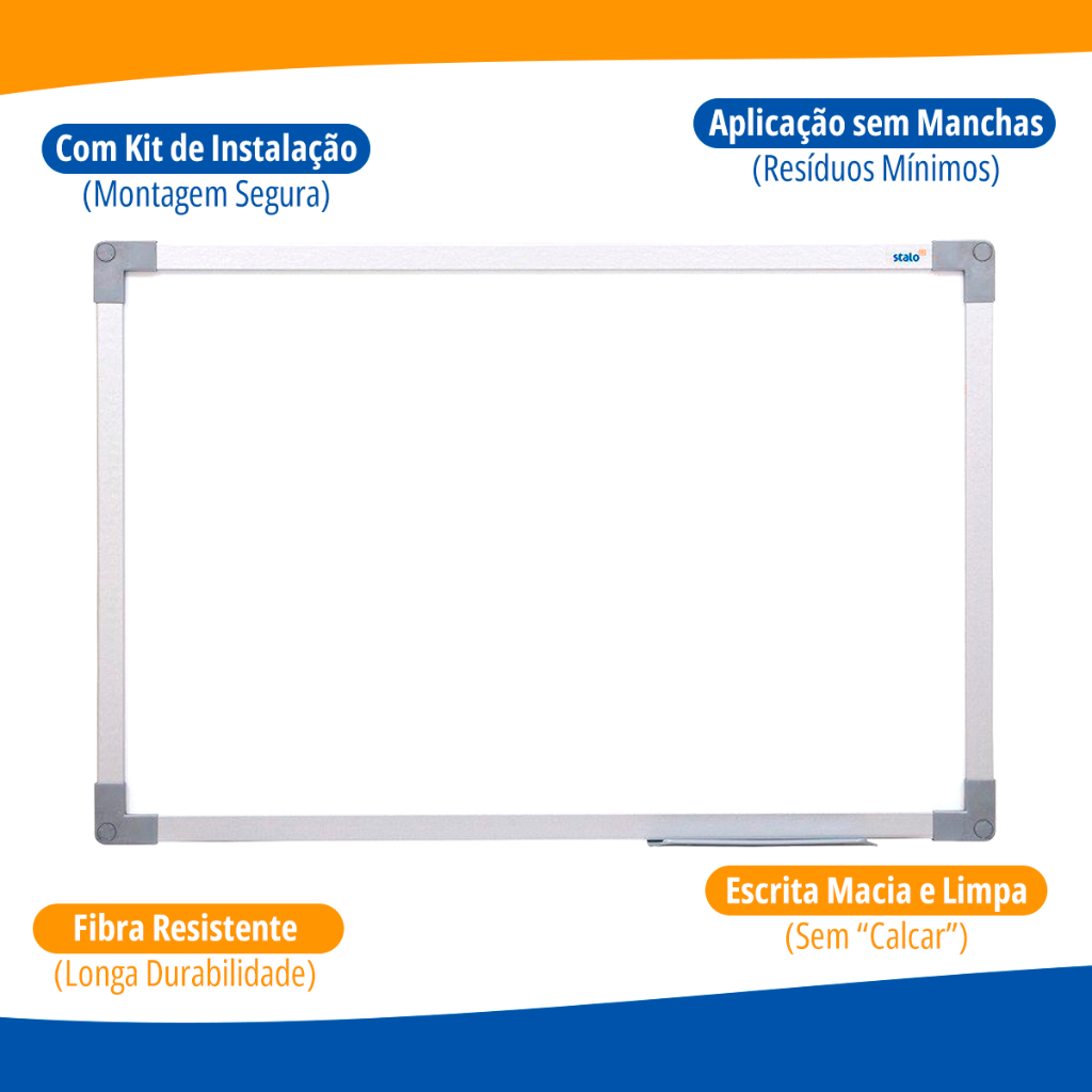 APRESENTE SUAS IDEIAS! Com esta lousa você poderá organizar seus estudos, palestras e até mesmo dar aulas com muita praticidade, agregando benefícios para seu dia a dia! Produzida em materiais de qualidade, a Lousa possui moldura MDF Soft na cor alumínio e um belo acabamento em pintura UV brilhante em chapa de fibra. Além disso, também conta uma caneta, um porta caneta e kit fixação invisível para que ele fique impecável em sua parede. Uma qualidade Stalo que você encontra aqui na E-MOVE! Peça já! ------------------------------------------------------------------- ESPECIFICAÇÕES: Marca: Stalo Modelo: Soft Cor da moldura: Alumínio Cor da lousa: Branco Brilhante UV Largura: 120 cm Altura: 90 cm CARACTERÍSTICAS: Lousa para uso de marcador de quadro branco Tela em chapa de fibra de madeira Pintura UV de alta durabilidade Kit instalação invisível APLICAÇÃO: Em paredes, tanto na vertical quanto horizontal. Também é possível usá-la em suportes cavaletes específicos para lousas. Consulte-nos para adesão. RECOMENDAÇÕES DE USO: • Para apagar, utilize um apagador ou pano macio e seco • Jamais utilize produtos químicos como álcool, limpadores multiusos ou detergentes para limpar a tela de seu quadro branco. Se ao apagar, você perceber que a tinta está ressecada ou pastosa, causando dificuldade de limpeza e manchas, utilize Stalimpa. Trata-se de um limpador especial para quadros brancos, que dissolve a tinta ressecada, limpando o quadro sem agredir a tela • Ao perceber que a tinta do marcador está falhando, troque-o o mais rápido possível. A ponta do marcador, sem a tinta, pode danificar a tela do quadro • FIQUE ATENTO: Use sempre marcador para quadro branco. Prefira sempre um modelo de marca e de qualidade reconhecida O QUE VEM INCLUSO? 1 Lousa 120x90 Stalo 2 Canetas de Brinde 1 Porta caneta Acessórios para fixação na parede SOBRE A LOJA: Somos a E-MOVE. Prezamos pela qualidade, velocidade e confiança nas suas compras.