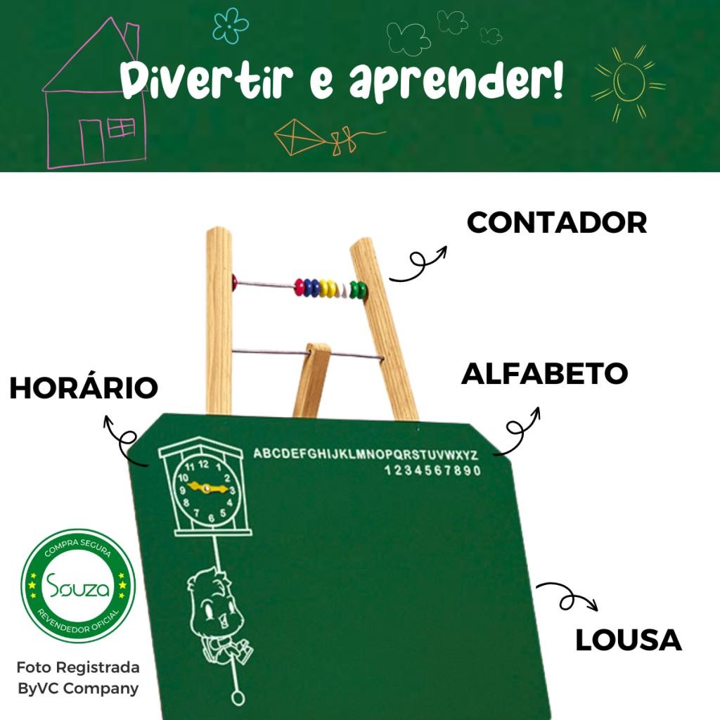 Lousa de Giz Infantil Cavalete 80cm Lousa Quadro Verde + Giz + Apagador