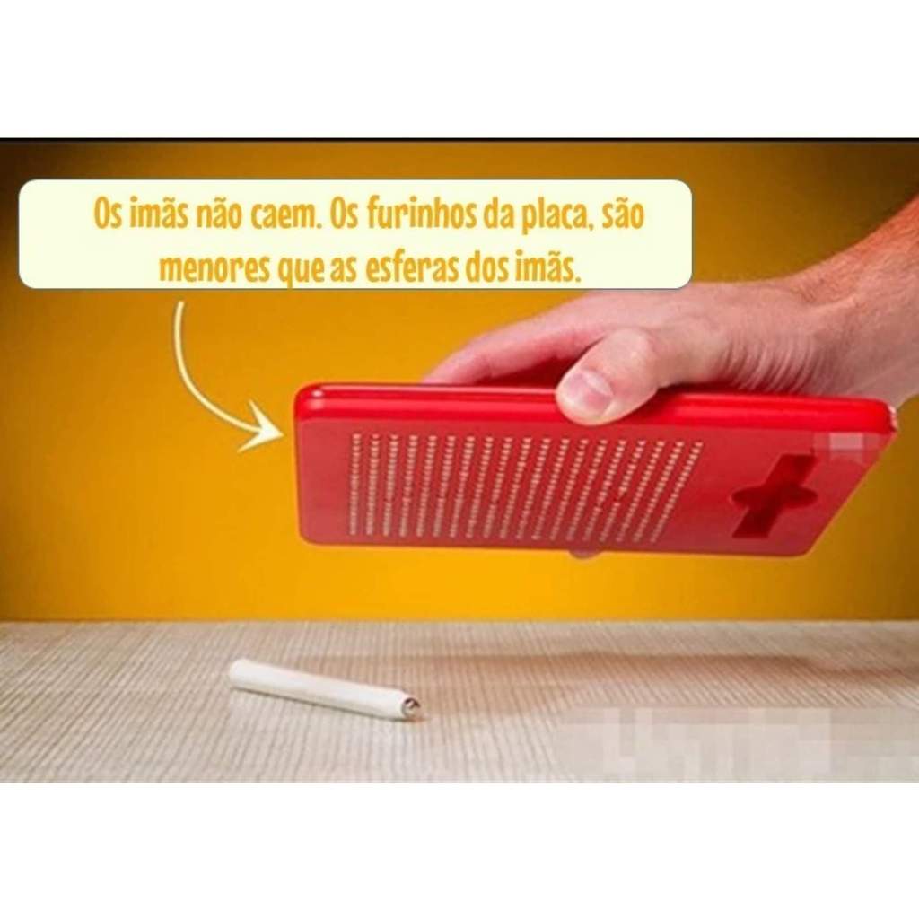 Magpad Desenho Braskit Lousa Magnetica Placa com Caneta. São 20 desenhos para os pequenos reproduzirem no quadro. Também pode-se criar desenhos aleatórios e testar a escrita. Brinquedo seguro pois as bolinhas não saem do painel magnético. Os imãs não caem. Os furinhos da placa, são menores que as esferas dos imãs. Na pontinha da caneta, possui um imã, fazendo as bolinhas seguirem os comandos da caneta. Brinquedo de atividades que auxilia a criança no desenvolvimento de habilidades motoras finas. É perfeito para crianças em fase de desenvolvimento. Estimula desenvolvimento de reflexo também melhorando a concentração e a coordenação dos olhinhos e mãos. Brinquedo interativo entre pais e filhos. O quadro magnético Magpad é feito de material de alta qualidade com superfície lisa, durável e seguro, adequado para todas as crianças. Excelente brinquedo para meninos e meninas que ajuda no aprendizado da escrita e leitura, do desenho e incentiva o desenvolvimento da criatividade. Medidas do Produto: Comprimento: 21,50 cm Largura: 1,00 cm Altura: 17,00 cm Detalhes: Não é necessária a utilização de pilhas Idade recomendada: + 4 anos Características: -Marca: Braskit -Modelo: 1509 *Imagens meramente ilustrativas* Conteúdo da embalagem: - 01 caneta - 10 cartões com 20 desenhos