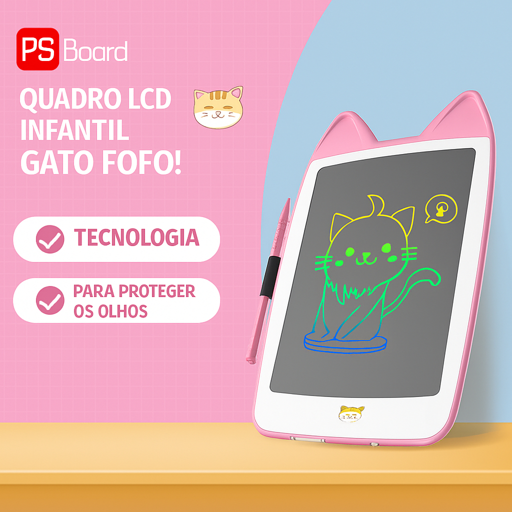 Lousa Mágica Tela Colorida Grande Orelha de Gatinho Lcd Tablet Escrever Desenhar Rosa e Azul