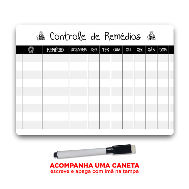 | Lousa Magnética Geladeira Organização e Controle de Medicamentos c/... este produto | R$ 23,90 | — | 4.8/5 | 15 |