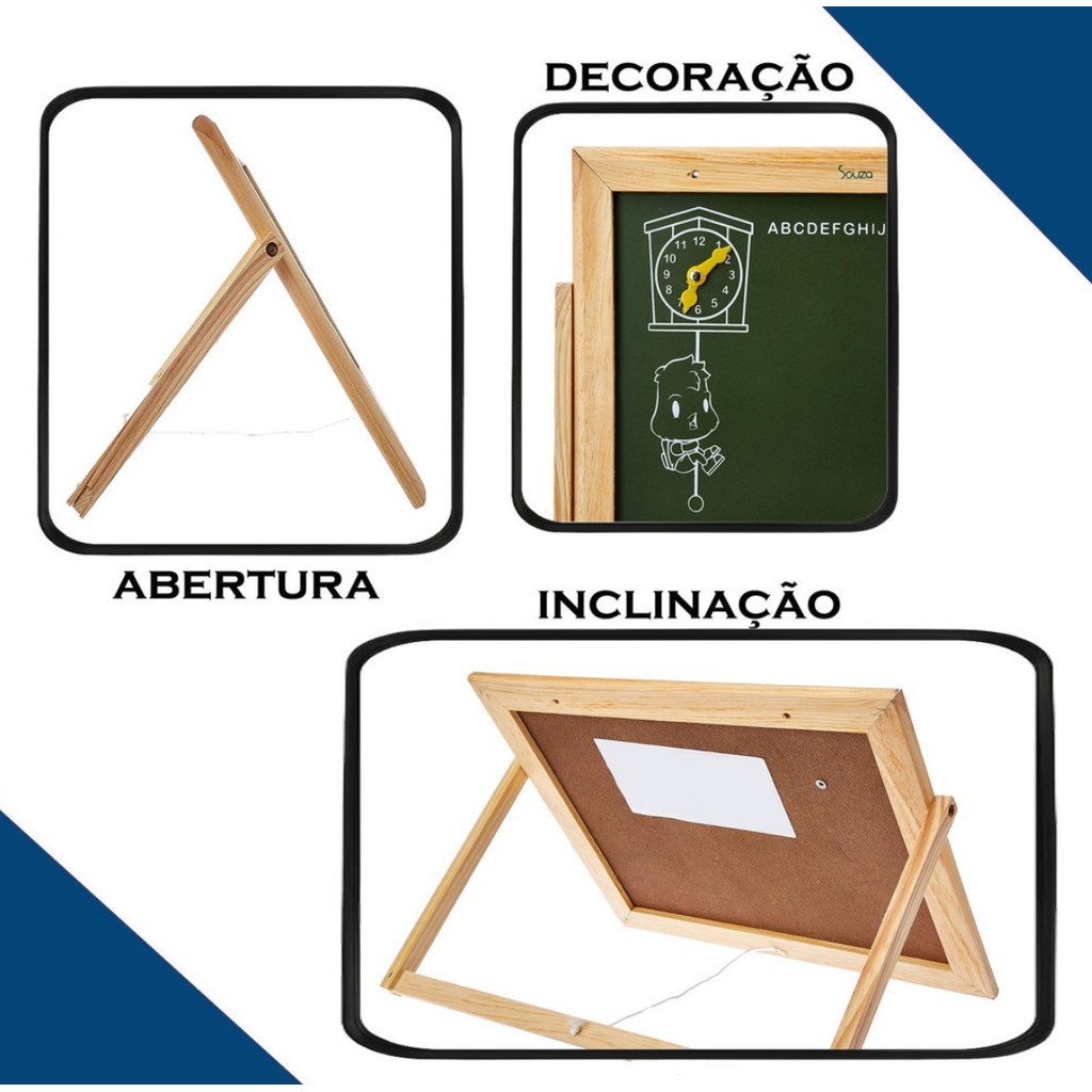 🖍️📚 Lousa Quadro Verde Infantil 70x50cm com Cavalete ➕ Alfabeto Numerais e Relógio + 5 Gizes