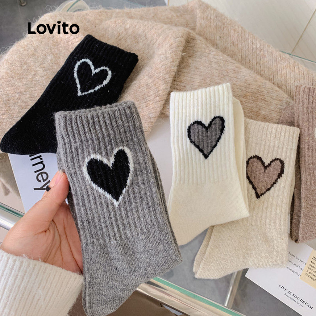 Lovito 5 Pares Meias Fofas Elásticas 4 Vias Pacote Combinado Mulheres LNE130049