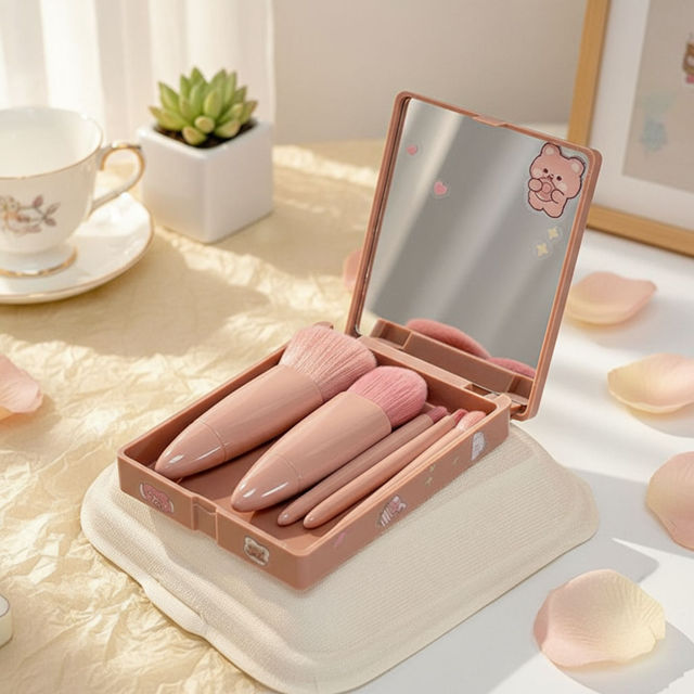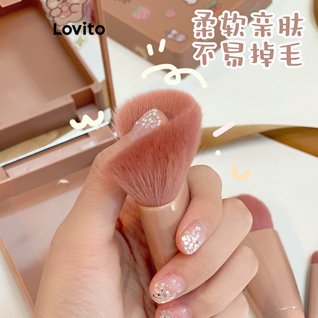 Lovito Beauty 5 em 1 Kit de Pincéis Multifuncionais e Espelho para Maquiagem Feminina LBT01034