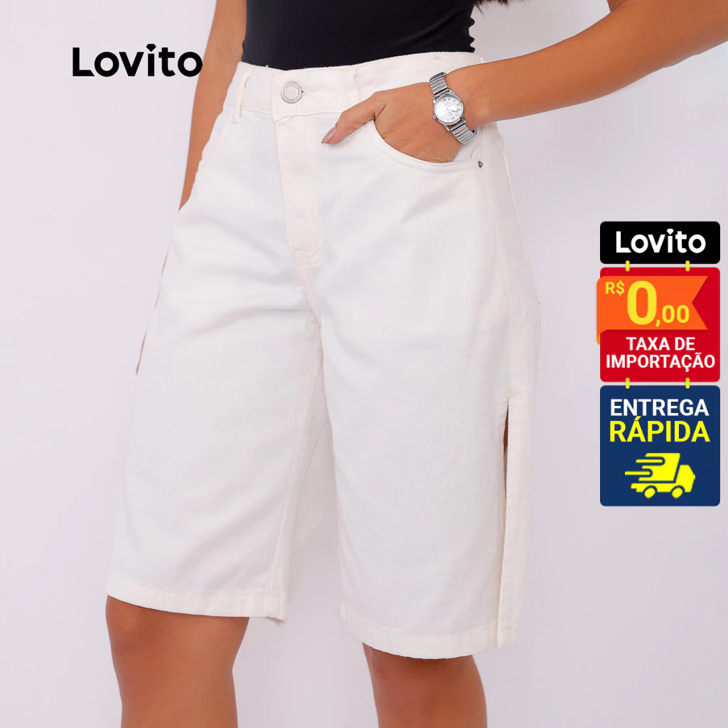 Lovito Bermuda Jeans Casuais Com Fenda Lisos para Mulheres LB901BRL931