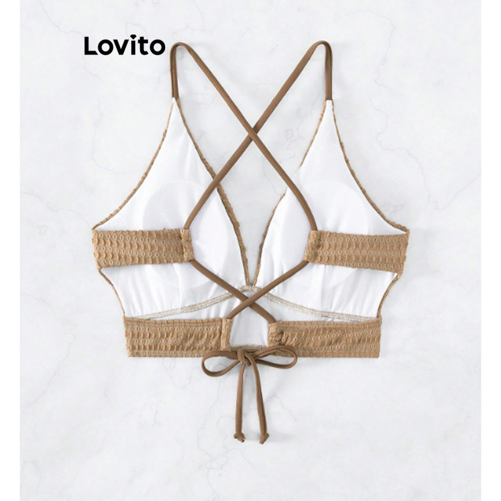 Lovito Biquíni Elegante Com Textura Cruzada Lisa E Top De Biquíni Para Mulheres LNL42167