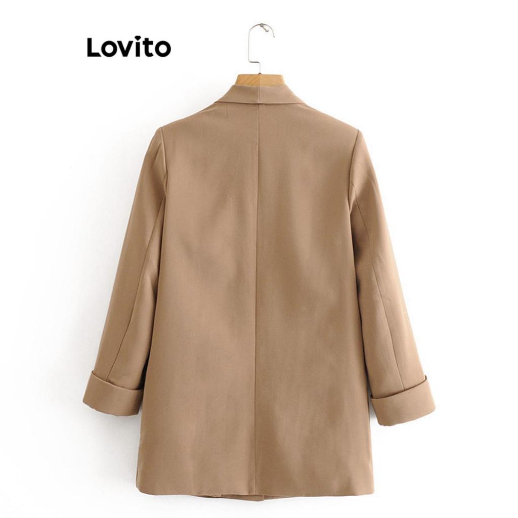 Lovito Blazer Casual Bolso Liso E Botão Básico Para Mulheres LNL63403