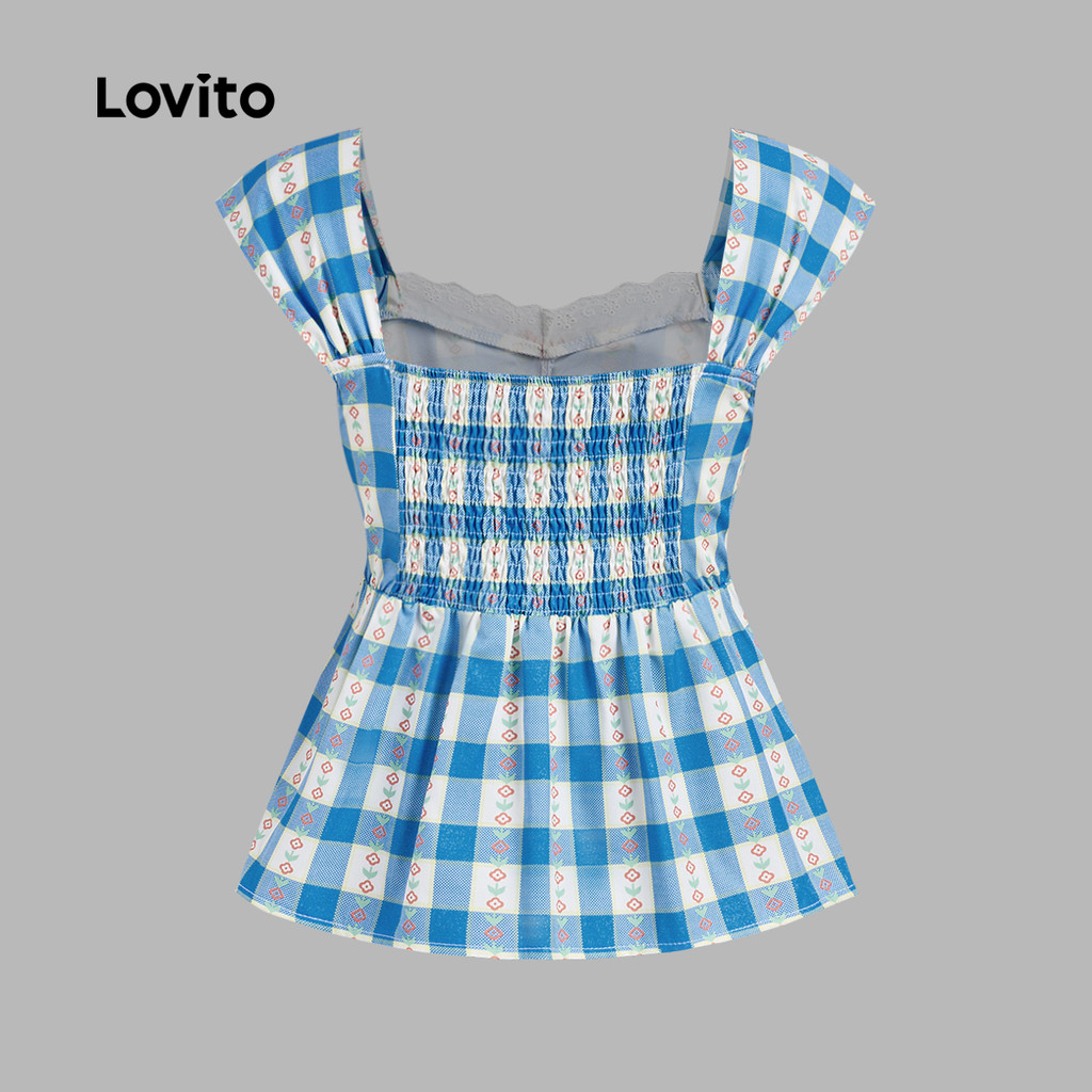 Lovito Blusa Azul com Laço Superior Fofo para Primavera/verão para mulheres L159AD094
