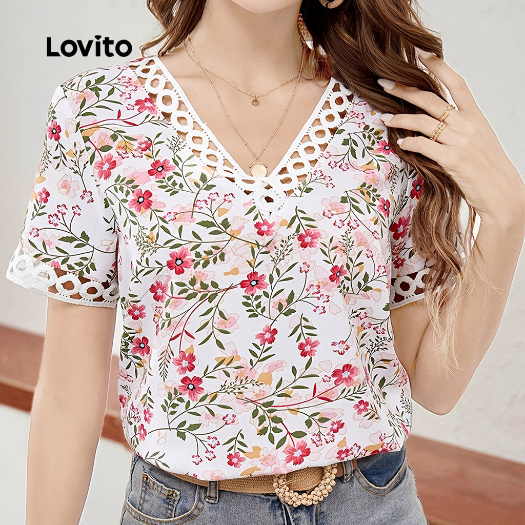 ✅DESTAQUES -❤️Pescoço com babados -❤️Colarinho Contraste -❤️Bordado de algodão bordado com ilhó de flor queimada -❤️Macio e confortável -❤️Primavera e verão ✅DESCRIÇÕES Estampa / Padrão:Floral Estilo:Boho Tamanho Plus:No Material:Poliéster Composição:100%Polyester Tipo de modelagem:Regular Fit Transparência:No Esticar:Non-stretch Feito na China ✅O PACOTE INCLUI 1XBlusa ✅INTRODUÇÃO LOVITO A Lovito é uma marca em crescimento que acredita no poder das meninas. Estamos comprometidos em oferecer opções de roupas fashion e acessíveis, para todos os estilos, necessidades e identidades. Acreditamos que a moda deve ser divertida, liberadora e fazer você se sentir incrível. Afinal, o melhor acessório para qualquer look é a autoconfiança! ✅NOTAS DE COMPRA Antes de comprar, dê uma olhadinha na tabela de medidas disponível no site. Lembre-se de que, por serem feitas manualmente, as medidas podem variar de 1 a 2 cm. As cores dos produtos também podem ter pequenas diferenças em relação às fotos, dependendo da iluminação e das configurações do seu dispositivo. Siga nossa loja e conheça novos itens e as melhores ofertas para você!! Se você tiver alguma dúvida, converse conosco e responderemos o mais rápido possível.