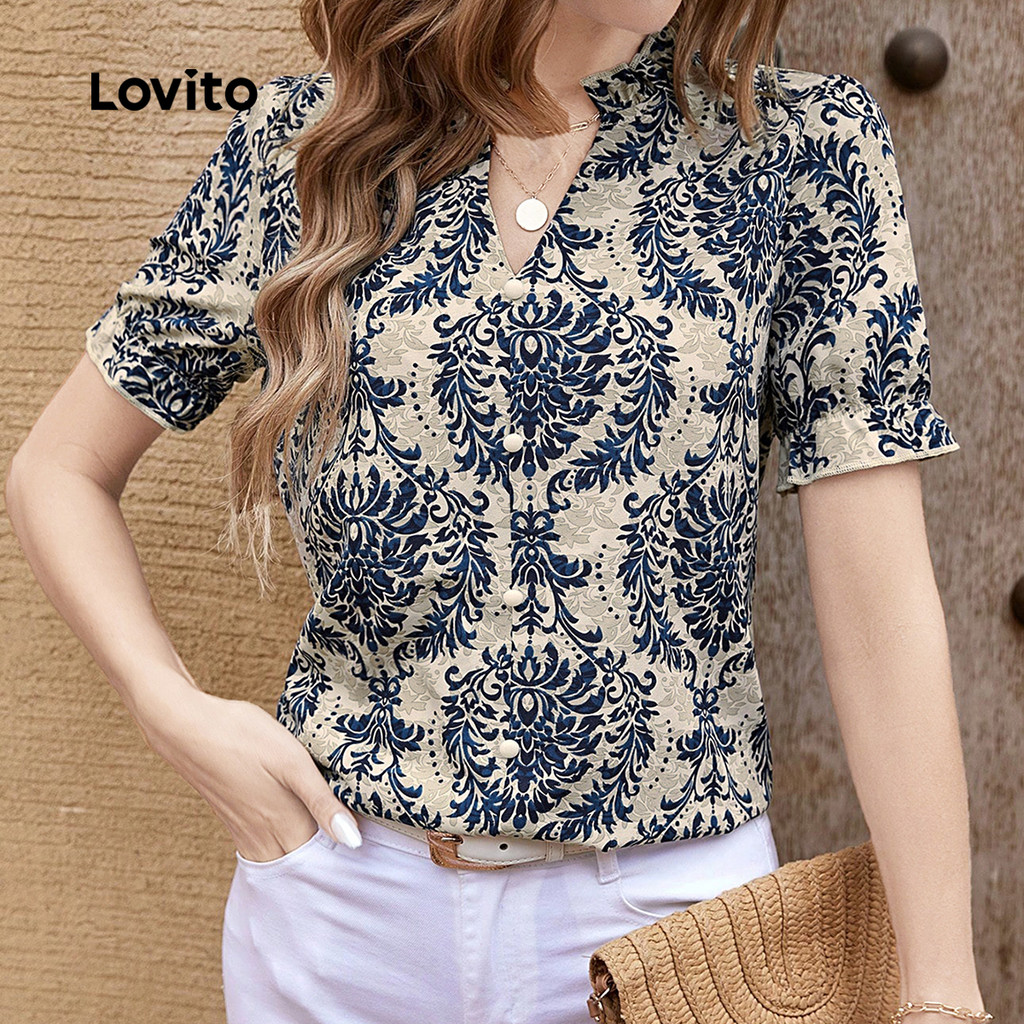 ✅DESTAQUES -❤️Babado -❤️BotãoBotão -❤️Macio e confortável -❤️Primavera e verão ✅DESCRIÇÕES Estampa / Padrão:Tribal print Estilo:Boho Tamanho Plus:No Material:Poliéster Composição:100%Polyester Tipo de modelagem:Regular Fit Transparência:No Esticar:Non-stretch Feito na China ✅O PACOTE INCLUI 1XBlusa ✅INTRODUÇÃO LOVITO A Lovito é uma marca em crescimento que acredita no poder das meninas. Estamos comprometidos em oferecer opções de roupas fashion e acessíveis, para todos os estilos, necessidades e identidades. Acreditamos que a moda deve ser divertida, liberadora e fazer você se sentir incrível. Afinal, o melhor acessório para qualquer look é a autoconfiança! ✅NOTAS DE COMPRA Antes de comprar, dê uma olhadinha na tabela de medidas disponível no site. Lembre-se de que, por serem feitas manualmente, as medidas podem variar de 1 a 2 cm. As cores dos produtos também podem ter pequenas diferenças em relação às fotos, dependendo da iluminação e das configurações do seu dispositivo. Siga nossa loja e conheça novos itens e as melhores ofertas para você!! Se você tiver alguma dúvida, converse conosco e responderemos o mais rápido possível.
