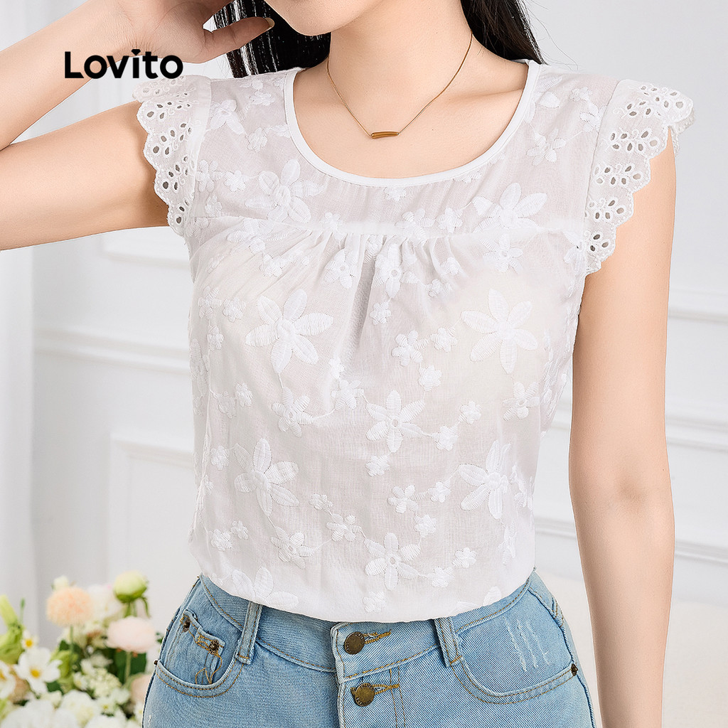 ✅DESTAQUES -❤️Bordado de algodão bordado com ilhó de flor queimada -❤️Babado -❤️algodão -❤️Leve e respirável -❤️Primavera e verão ✅DESCRIÇÕES Estampa / Padrão:Plain Estilo:Boho Tamanho Plus:No Material:Algodão Composição:100%Cotton Tipo de modelagem:Regular Fit Transparência:No Esticar:Non-stretch Feito na China ✅O PACOTE INCLUI 1XBlusa ✅INTRODUÇÃO LOVITO A Lovito é uma marca em crescimento que acredita no poder das meninas. Estamos comprometidos em oferecer opções de roupas fashion e acessíveis, para todos os estilos, necessidades e identidades. Acreditamos que a moda deve ser divertida, liberadora e fazer você se sentir incrível. Afinal, o melhor acessório para qualquer look é a autoconfiança! ✅NOTAS DE COMPRA Antes de comprar, dê uma olhadinha na tabela de medidas disponível no site. Lembre-se de que, por serem feitas manualmente, as medidas podem variar de 1 a 2 cm. As cores dos produtos também podem ter pequenas diferenças em relação às fotos, dependendo da iluminação e das configurações do seu dispositivo. Siga nossa loja e conheça novos itens e as melhores ofertas para você!! Se você tiver alguma dúvida, converse conosco e responderemos o mais rápido possível.