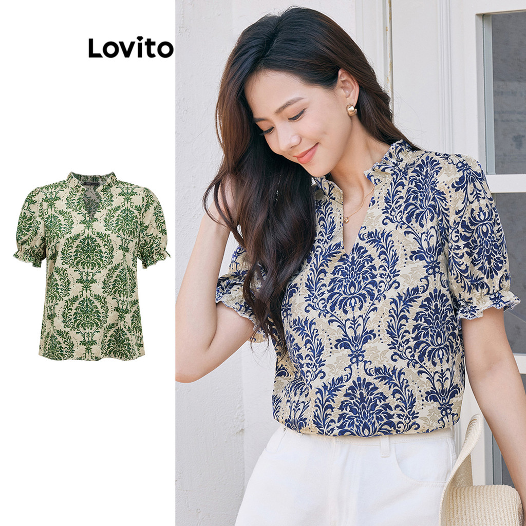 Lovito Blusa Boho Com Estampa Tribal Blusa Feminina L95ED145 (Multicolorido)
