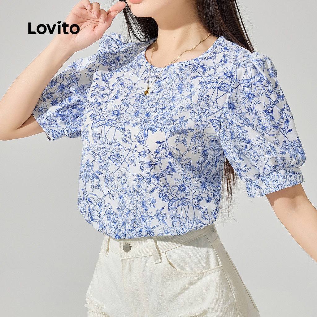 Lovito Blusa Boho Ditsy com botões florais para mulheres L123ED183