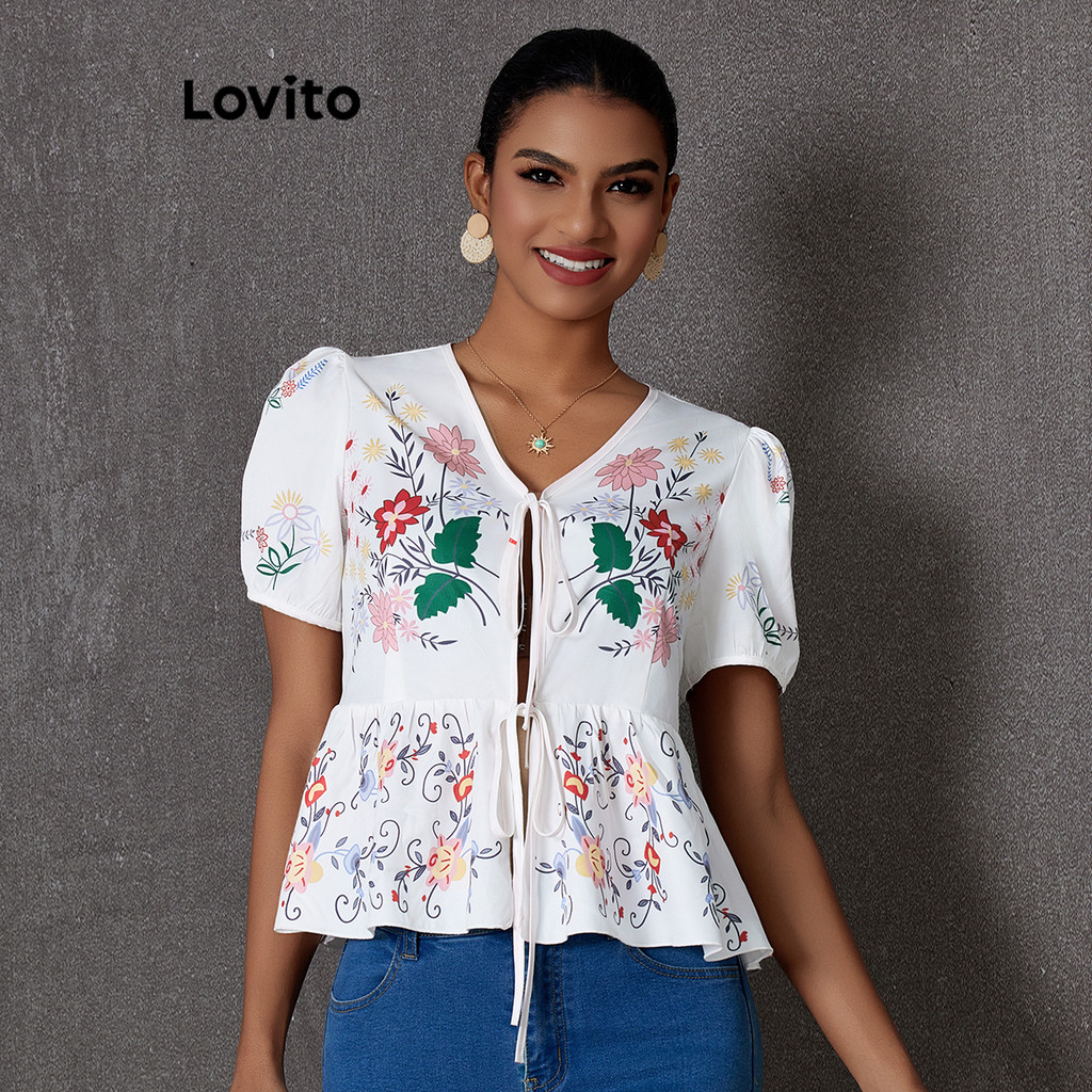 Lovito Blusa Boho Floral Amarração Tropical Feminina Para Verão Primavera LBL20087
