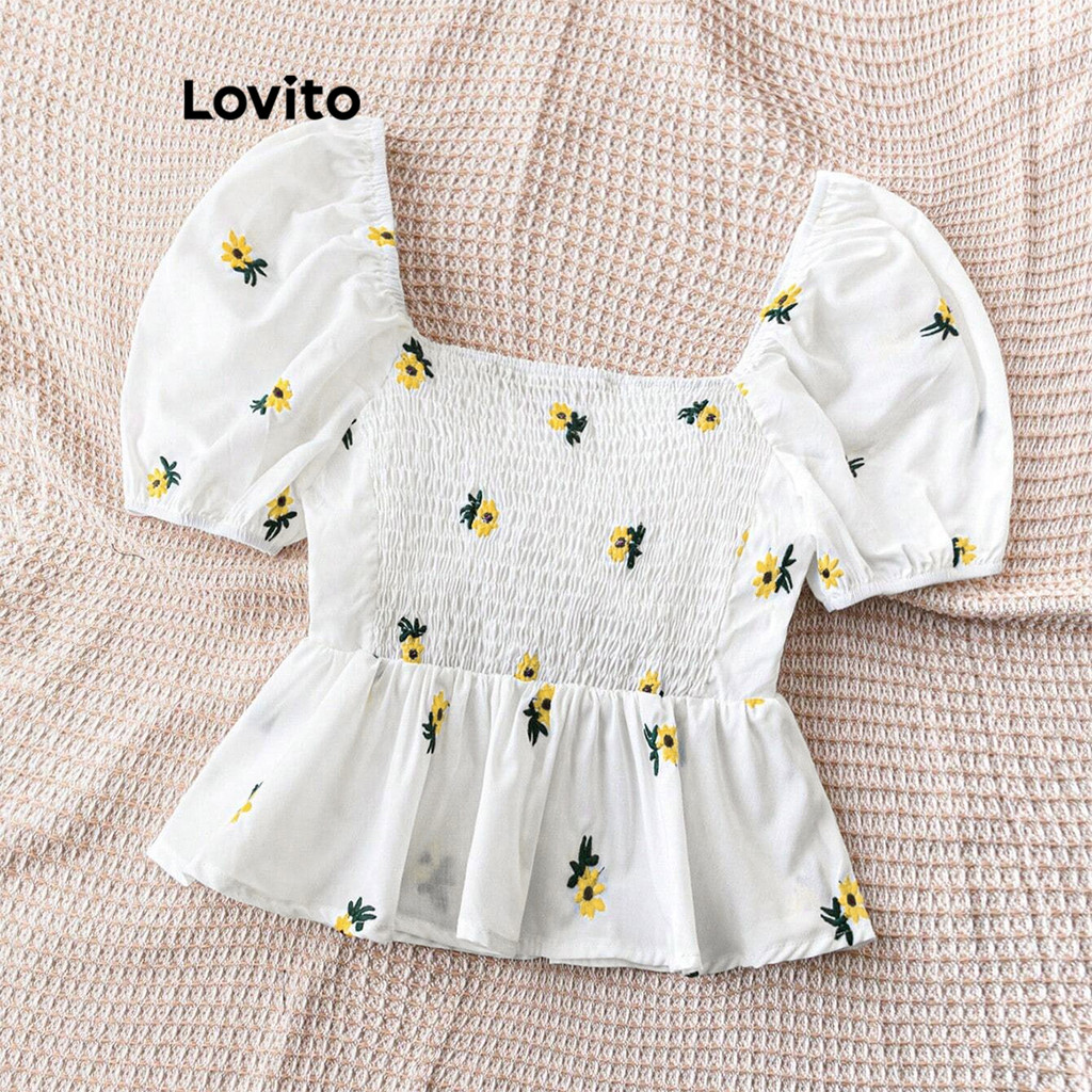 Lovito Blusa bordada floral fofa para mulheres L112ED195