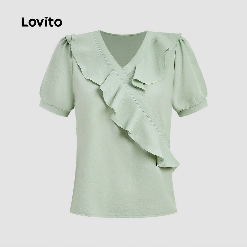✅DESTAQUES -❤️Assimétrico -❤️Babado -❤️Macio e confortável -❤️Primavera e verão ✅DESCRIÇÕES Estampa / Padrão:Plain Estilo:Casual Tamanho Plus:No Material:Poliéster Composição:95%Polyester+5%Spandex Tipo de modelagem:Regular Fit Transparência:No Esticar:Non-stretch Feito na China ✅O PACOTE INCLUI 1XBlusa ✅INTRODUÇÃO LOVITO A Lovito é uma marca em crescimento que acredita no poder das meninas. Estamos comprometidos em oferecer opções de roupas fashion e acessíveis, para todos os estilos, necessidades e identidades. Acreditamos que a moda deve ser divertida, liberadora e fazer você se sentir incrível. Afinal, o melhor acessório para qualquer look é a autoconfiança! ✅NOTAS DE COMPRA Antes de comprar, dê uma olhadinha na tabela de medidas disponível no site. Lembre-se de que, por serem feitas manualmente, as medidas podem variar de 1 a 2 cm. As cores dos produtos também podem ter pequenas diferenças em relação às fotos, dependendo da iluminação e das configurações do seu dispositivo. Siga nossa loja e conheça novos itens e as melhores ofertas para você!! Se você tiver alguma dúvida, converse conosco e responderemos o mais rápido possível.