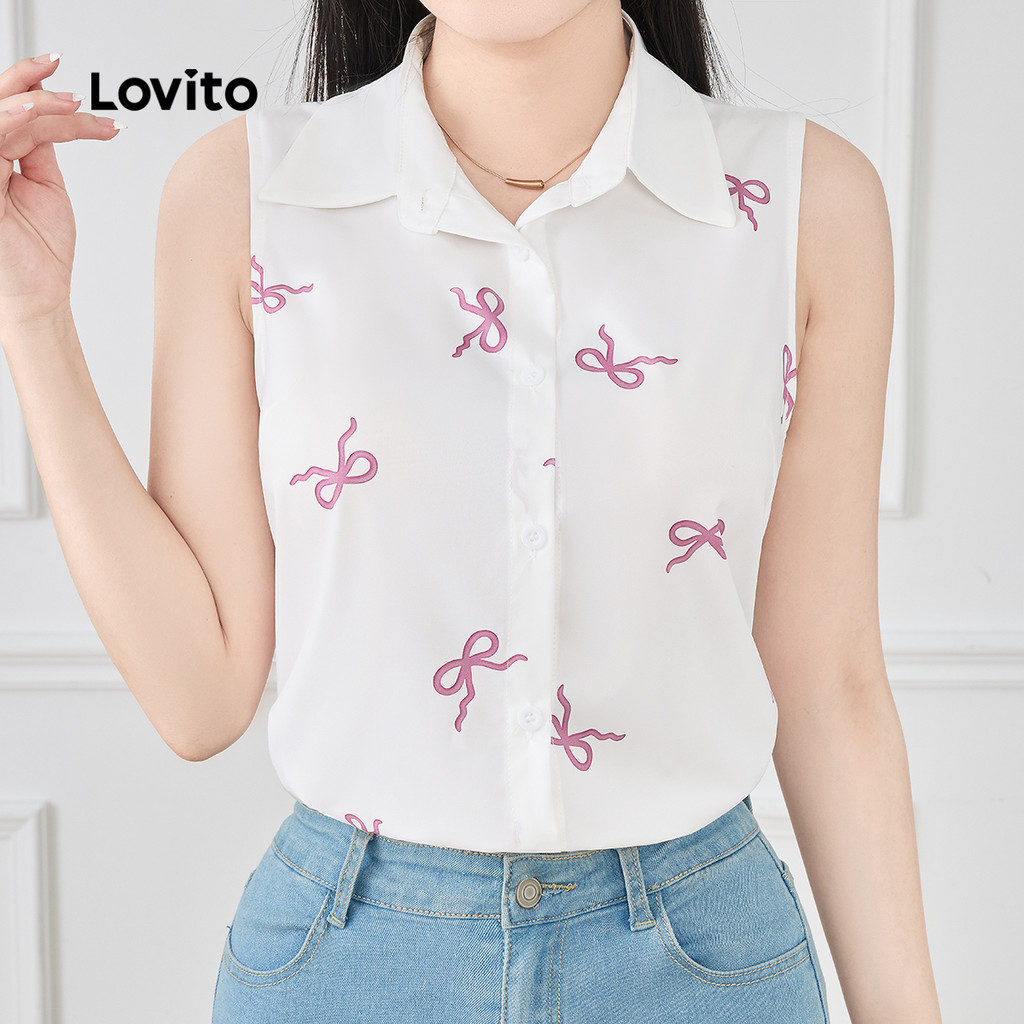 Lovito Blusa Casual Botão Primavera/verão Blusa Branca para Mulheres L171ED163