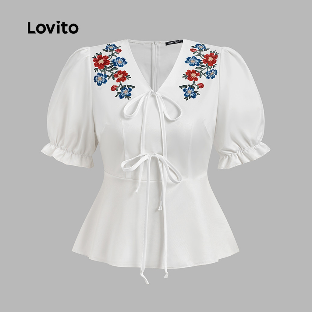 Lovito Blusa Casual com Amarração e Babados para Primavera/verão Blusa Branca para Mulheres. L171ED216