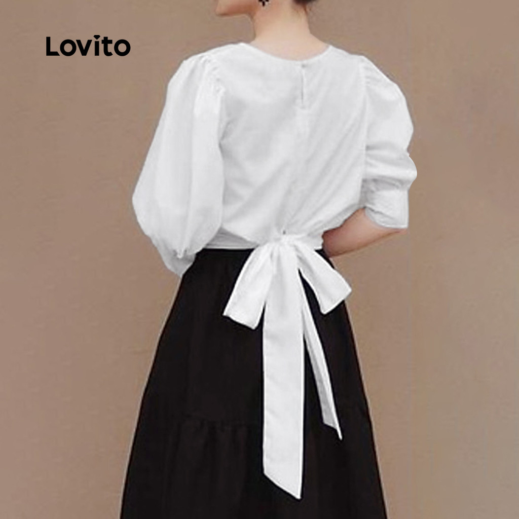 Lovito Blusa Casual com Amarração Traseira para Uso Comum Primavera/verão Off White para Mulheres L172ED766
