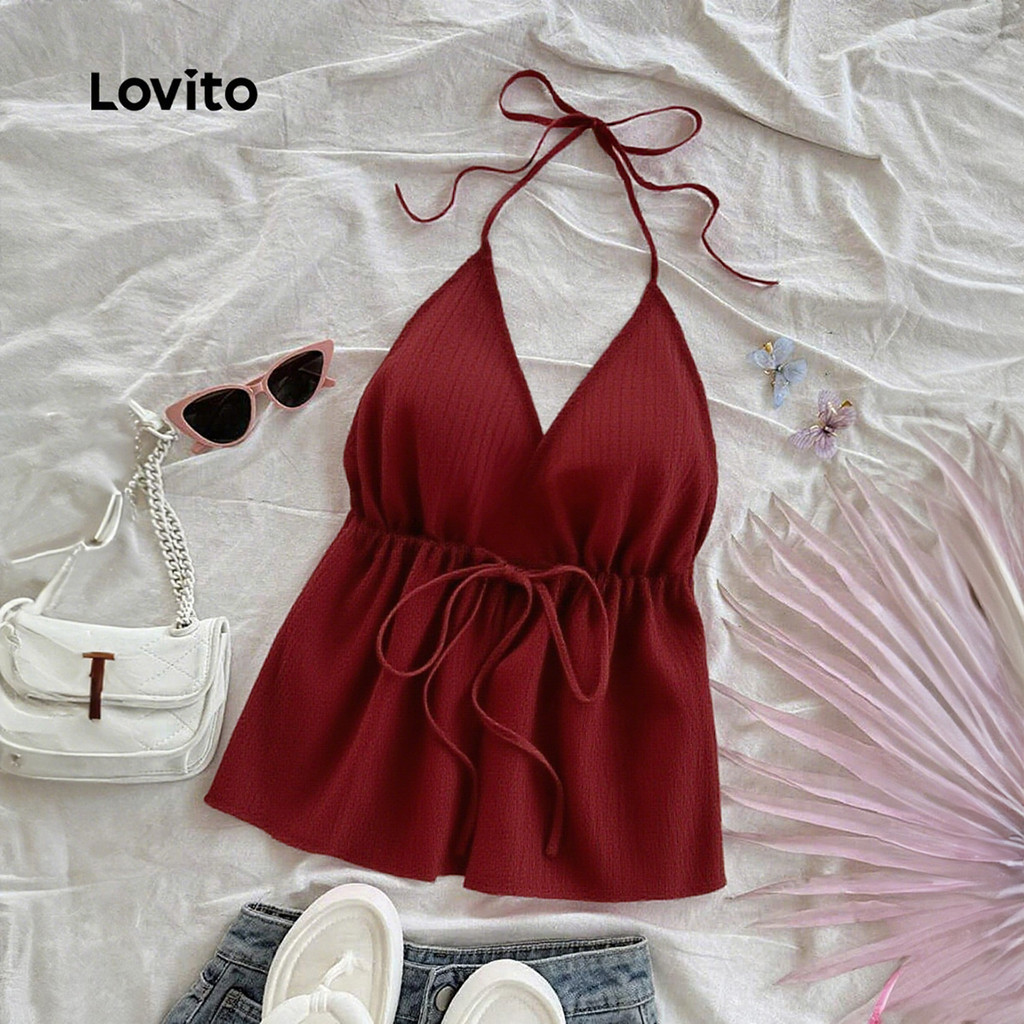 Lovito Blusa Casual Com Barra Franzida Em Tom Rosado Para Mulheres Ideal Para a Primavera/verão L150ED689