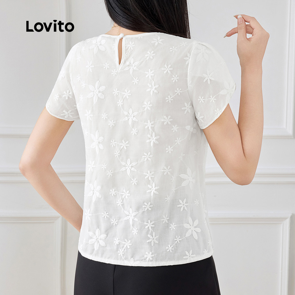 Lovito Blusa Casual com Bordado de Ilhós Primavera/verão Blusa Branca para Mulheres L154ED131