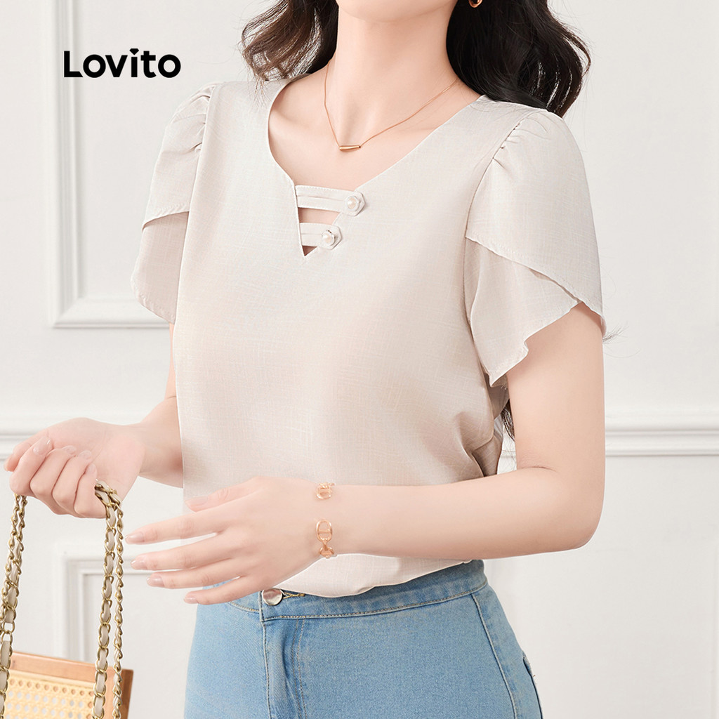 Lovito Blusa Casual com Botões Primavera/verão Blusa Khaki para Mulheres L165AD856