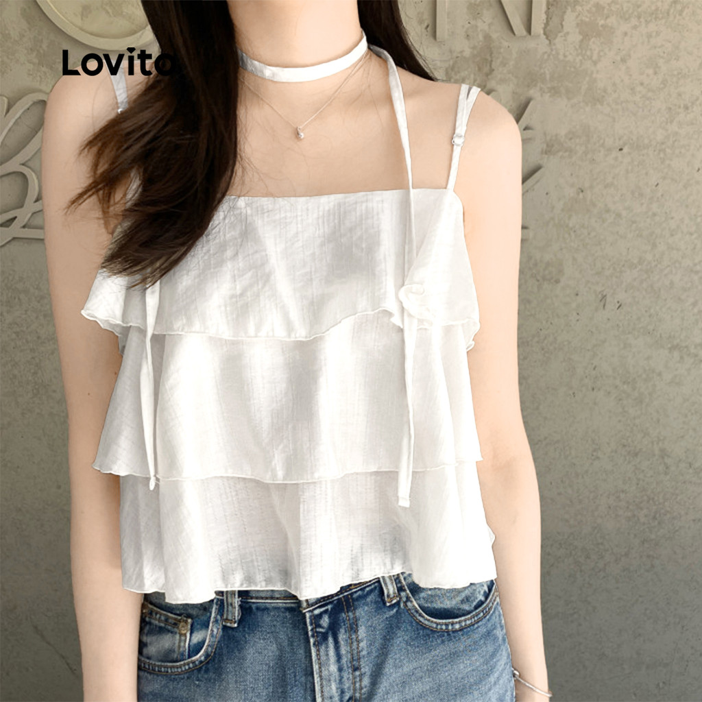 ✅DESTAQUES -❤️Camada em camadas -❤️Adeus e confortáveis da pele -❤️Primavera e verão ✅DESCRIÇÕES Estampa / Padrão:Plain Estilo:casual Tamanho Plus:Não Material:Poliéster Composição:100% Poliéster Tipo de modelagem: Casualmente ajuste Transparência:Não Esticar:Não estendido Feito na China ✅O PACOTE INCLUI 1XPrincipal ✅INTRODUÇÃO LOVITO A Lovito é uma marca em crescimento que acredita no poder das meninas. Estamos comprometidos em oferecer opções de roupas fashion e acessíveis, para todos os estilos, necessidades e identidades. Acreditamos que a moda deve ser divertida, liberadora e fazer você se sentir incrível. Afinal, o melhor acessório para qualquer look é a autoconfiança! ✅NOTAS DE COMPRA Antes de comprar, dê uma olhadinha na tabela de medidas disponível no site. Lembre-se de que, por serem feitas manualmente, as medidas podem variar de 1 a 2 cm. As cores dos produtos também podem ter pequenas diferenças em relação às fotos, dependendo da iluminação e das configurações do seu dispositivo. Siga nossa loja e conheça novos itens e as melhores ofertas para você!! Se você tiver alguma dúvida, converse conosco e responderemos o mais rápido possível.😊