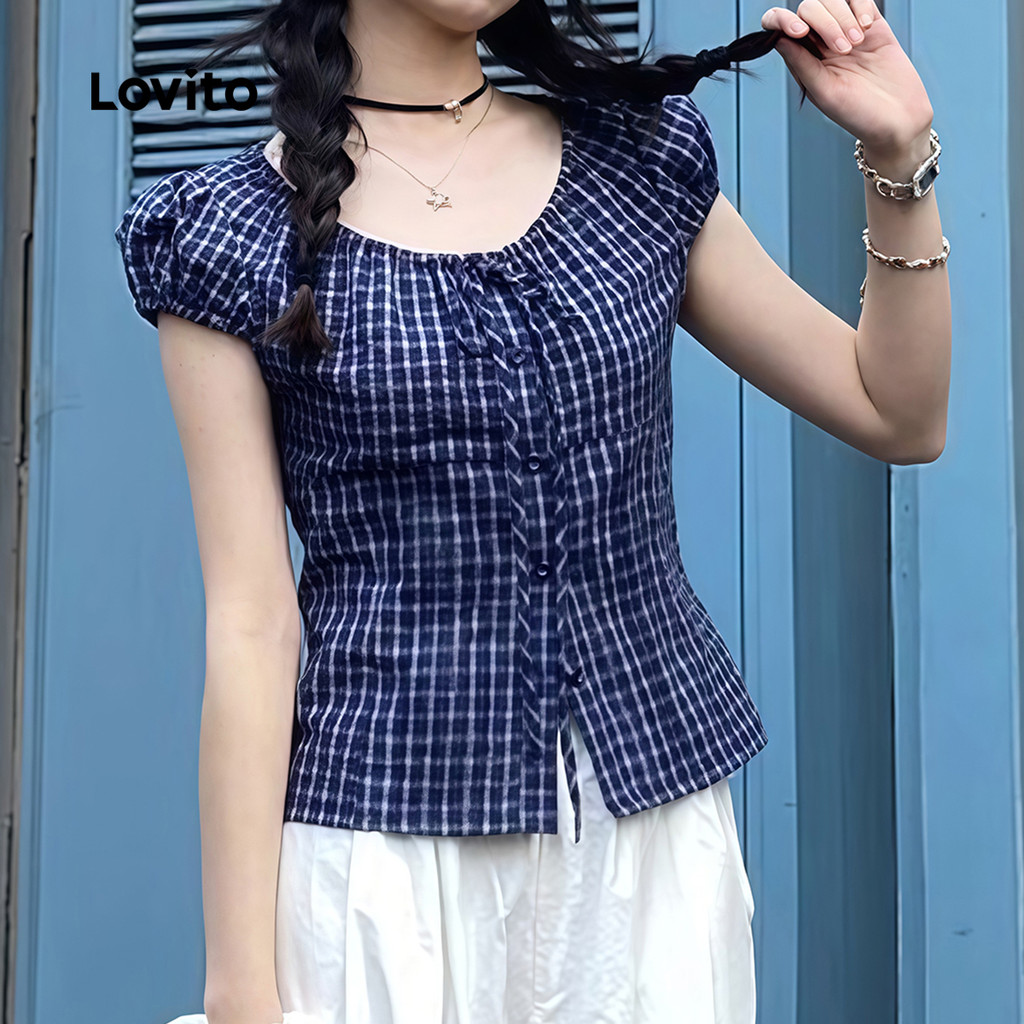 ✅DESTAQUES -❤️Gravata frontal -❤️Padrão -❤️Lazer -❤️Fresco e confortável -❤️Primavera e verão ✅DESCRIÇÕES Estampa / Padrão:Gingham Estilo:Casual Tamanho Plus:Não Material:Poliéster Composição:95% Poliéster + 5% Spandex Tipo de modelagem: Corte regular Transparência:Não Esticar:Não esticado Feito na China ✅O PACOTE INCLUI 1XBlusa ✅INTRODUÇÃO LOVITO A Lovito é uma marca em crescimento que acredita no poder das meninas. Estamos comprometidos em oferecer opções de roupas fashion e acessíveis, para todos os estilos, necessidades e identidades. Acreditamos que a moda deve ser divertida, liberadora e fazer você se sentir incrível. Afinal, o melhor acessório para qualquer look é a autoconfiança! ✅NOTAS DE COMPRA Antes de comprar, dê uma olhadinha na tabela de medidas disponível no site. Lembre-se de que, por serem feitas manualmente, as medidas podem variar de 1 a 2 cm. As cores dos produtos também podem ter pequenas diferenças em relação às fotos, dependendo da iluminação e das configurações do seu dispositivo. Siga nossa loja e conheça novos itens e as melhores ofertas para você!! Se você tiver alguma dúvida, converse conosco e responderemos o mais rápido possível.😊