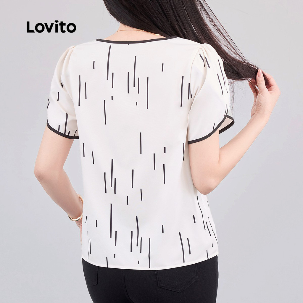 ✅DESTAQUES -❤️Cor ContrasteColorblock -❤️Padrão -❤️Sensação de mão suave -❤️Primavera e verão ✅DESCRIÇÕES Estampa / Padrão:Listrado Estilo:Casual Tamanho Plus:No Material:Poliéster. Composição:100%Polyester Tipo de modelagem:Solto Transparência:No Esticar:Non-stretch Feito na China ✅O PACOTE INCLUI 1XBlusa ✅INTRODUÇÃO LOVITO A Lovito é uma marca em crescimento que acredita no poder das meninas. Estamos comprometidos em oferecer opções de roupas fashion e acessíveis, para todos os estilos, necessidades e identidades. Acreditamos que a moda deve ser divertida, liberadora e fazer você se sentir incrível. Afinal, o melhor acessório para qualquer look é a autoconfiança! ✅NOTAS DE COMPRA Antes de comprar, dê uma olhadinha na tabela de medidas disponível no site. Lembre-se de que, por serem feitas manualmente, as medidas podem variar de 1 a 2 cm. As cores dos produtos também podem ter pequenas diferenças em relação às fotos, dependendo da iluminação e das configurações do seu dispositivo. Siga nossa loja e conheça novos itens e as melhores ofertas para você!! Se você tiver alguma dúvida, converse conosco e responderemos o mais rápido possível.