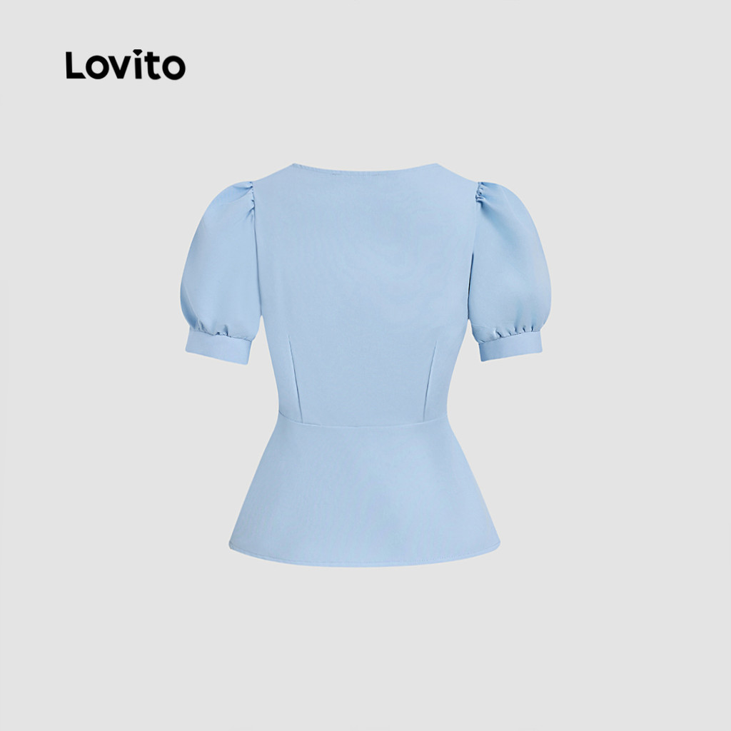 Lovito Blusa Casual com Pregas Linha Estrutural Primavera/verão Azul para Mulheres. L171ED141