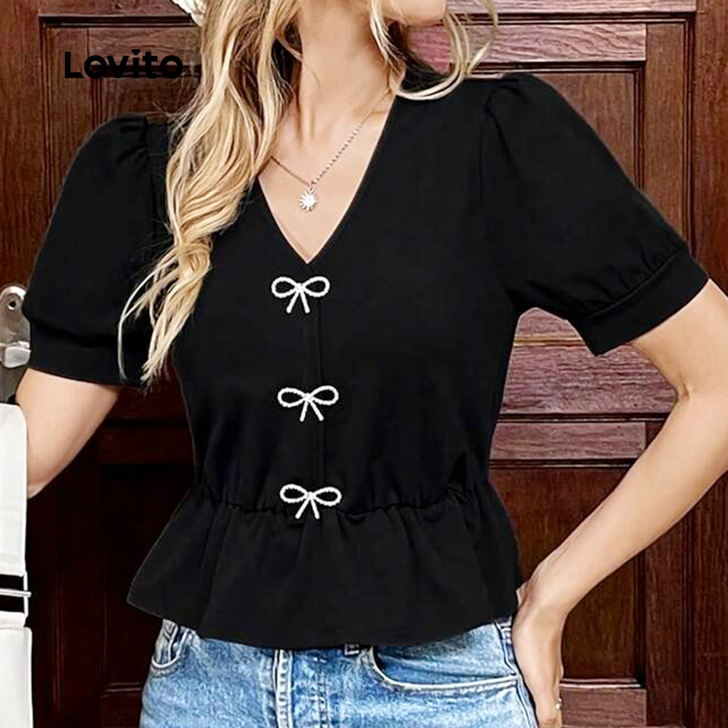 ✅DESTAQUES -❤️Fivela de strass -❤️Arco -❤️Bainha inglesa -❤️Sentimento de mão suave -❤️Primavera e verão ✅DESCRIÇÕES Estampa / Padrão:Plano Estilo:Casual Tamanho Plus:Não Material:Poliéster Composição:100% poliéster Tipo de modelagem: ajuste regular Transparência:Não Esticar:Não-elástico Feito na China ✅O PACOTE INCLUI 1XBlusa ✅INTRODUÇÃO LOVITO A Lovito é uma marca em crescimento que acredita no poder das meninas. Estamos comprometidos em oferecer opções de roupas fashion e acessíveis, para todos os estilos, necessidades e identidades. Acreditamos que a moda deve ser divertida, liberadora e fazer você se sentir incrível. Afinal, o melhor acessório para qualquer look é a autoconfiança! ✅NOTAS DE COMPRA Antes de comprar, dê uma olhadinha na tabela de medidas disponível no site. Lembre-se de que, por serem feitas manualmente, as medidas podem variar de 1 a 2 cm. As cores dos produtos também podem ter pequenas diferenças em relação às fotos, dependendo da iluminação e das configurações do seu dispositivo. Siga nossa loja e conheça novos itens e as melhores ofertas para você!! Se você tiver alguma dúvida, converse conosco e responderemos o mais rápido possível.😊
