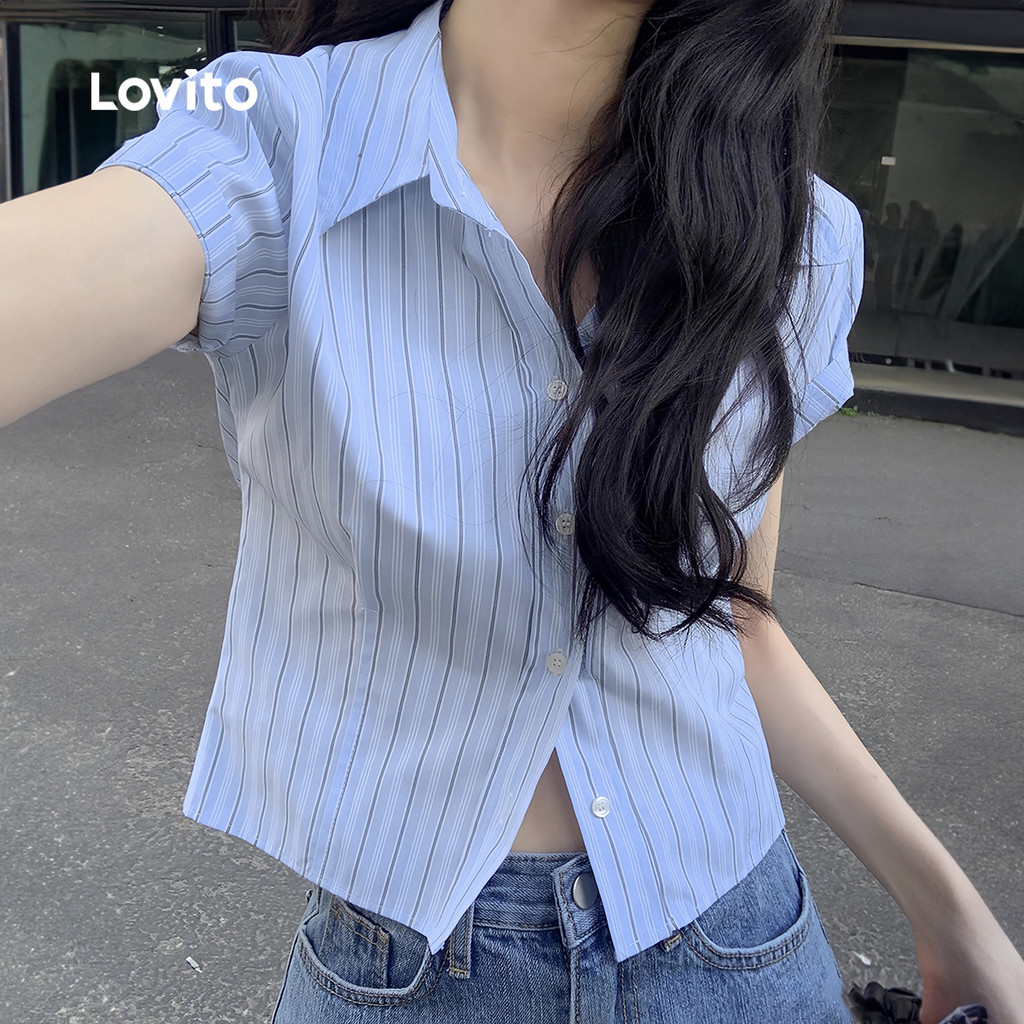 ✅Destaques -❤️Listra -❤️Botão -❤️Estampa -❤️Textura -❤️Fresco E Confortável -❤️Primavera E Verão ✅Descrições Estampa: Listrada Estilo: Casual Tamanho Plus: Não Material: Poliéster Composição: 100% Poliéster Tipo De Caimento: Regular Transparência: Não Elasticidade: Não Elástica Região De Origem: China Continental ✅O Pacote Inclui 1 Blusa ✅Introdução À Lovito A Lovito É Uma Marca Emergente Que Acredita No Poder Feminino, Comprometida Em Oferecer Opções De Roupas Elegantes E Acessíveis Para Diferentes Estilos, Necessidades E Identidades. Acreditamos Que A Moda Deve Ser Divertida, Libertadora E Fazer Você Se Sentir Bem. Afinal, O Melhor Acessório Para Qualquer Look É A Autoconfiança. ✅Notas De Compra Consulte A Tabela De Tamanhos Antes De Comprar. Pode Haver Uma Pequena Diferença Devido À Medição Manual. Todas As Fotos Dos Produtos Nesta Loja São Fotos Reais. Devido À Iluminação E À Diferença De Tela, Pequenas Variações Na Cor E No Produto Podem Ser Normais. Siga Nossa Loja E Descubra Novos Itens E As Melhores Ofertas Para Você!! Se Tiver Alguma Dúvida Ou Problema, Sinta-Se À Vontade Para Nos Enviar Uma Mensagem.😊