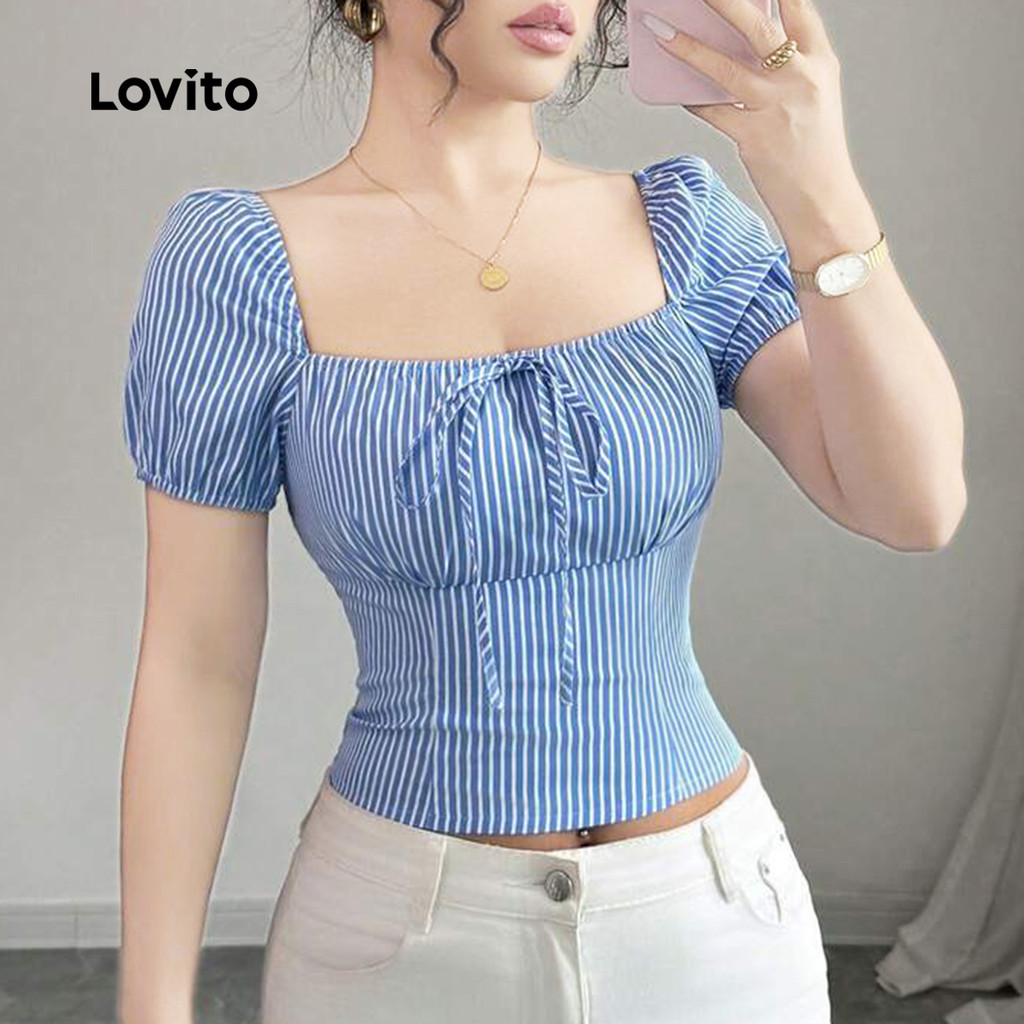 ✅DESTAQUES -❤️Zíper -❤️Arco -❤️Sensação de mão suave -❤️Primavera e verão -❤️Zíper lateral ✅DESCRIÇÕES Estampa / Padrão:Listrado Estilo:Casual Tamanho Plus:No Material:Poliéster Composição:100%Polyester Tipo de modelagem:Regular Fit Transparência:No Esticar:Non-stretch Feito na China ✅O PACOTE INCLUI 1XBlusa ✅INTRODUÇÃO LOVITO A Lovito é uma marca em crescimento que acredita no poder das meninas. Estamos comprometidos em oferecer opções de roupas fashion e acessíveis, para todos os estilos, necessidades e identidades. Acreditamos que a moda deve ser divertida, liberadora e fazer você se sentir incrível. Afinal, o melhor acessório para qualquer look é a autoconfiança! ✅NOTAS DE COMPRA Antes de comprar, dê uma olhadinha na tabela de medidas disponível no site. Lembre-se de que, por serem feitas manualmente, as medidas podem variar de 1 a 2 cm. As cores dos produtos também podem ter pequenas diferenças em relação às fotos, dependendo da iluminação e das configurações do seu dispositivo. Siga nossa loja e conheça novos itens e as melhores ofertas para você!! Se você tiver alguma dúvida, converse conosco e responderemos o mais rápido possível.