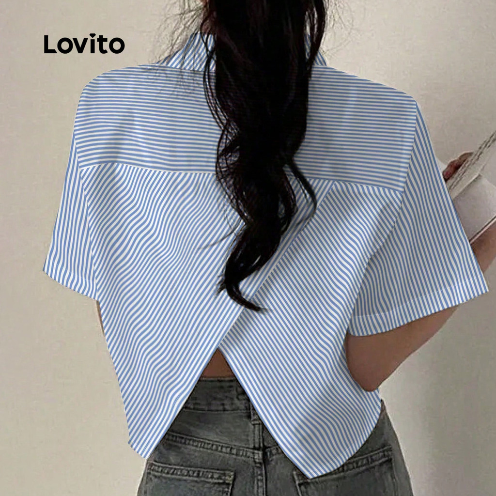 ✅DESTAQUES -❤️Botão frontal -❤️Botão -❤️Lazer -❤️Macio e confortável -❤️Primavera e verão ✅DESCRIÇÕES Estampa / Padrão: listrado Estilo:Informal Tamanho Plus:Não Material:Poliéster Composição:100% Poliéster Tipo de modelagem:ajuste regular Transparência:Não Esticar:Não esticado Feito na China ✅O PACOTE INCLUI 1XBlusa ✅INTRODUÇÃO LOVITO A Lovito é uma marca em crescimento que acredita no poder das meninas. Estamos comprometidos em oferecer opções de roupas fashion e acessíveis, para todos os estilos, necessidades e identidades. Acreditamos que a moda deve ser divertida, liberadora e fazer você se sentir incrível. Afinal, o melhor acessório para qualquer look é a autoconfiança! ✅NOTAS DE COMPRA Antes de comprar, dê uma olhadinha na tabela de medidas disponível no site. Lembre-se de que, por serem feitas manualmente, as medidas podem variar de 1 a 2 cm. As cores dos produtos também podem ter pequenas diferenças em relação às fotos, dependendo da iluminação e das configurações do seu dispositivo. Siga nossa loja e conheça novos itens e as melhores ofertas para você!! Se você tiver alguma dúvida, converse conosco e responderemos o mais rápido possível.😊