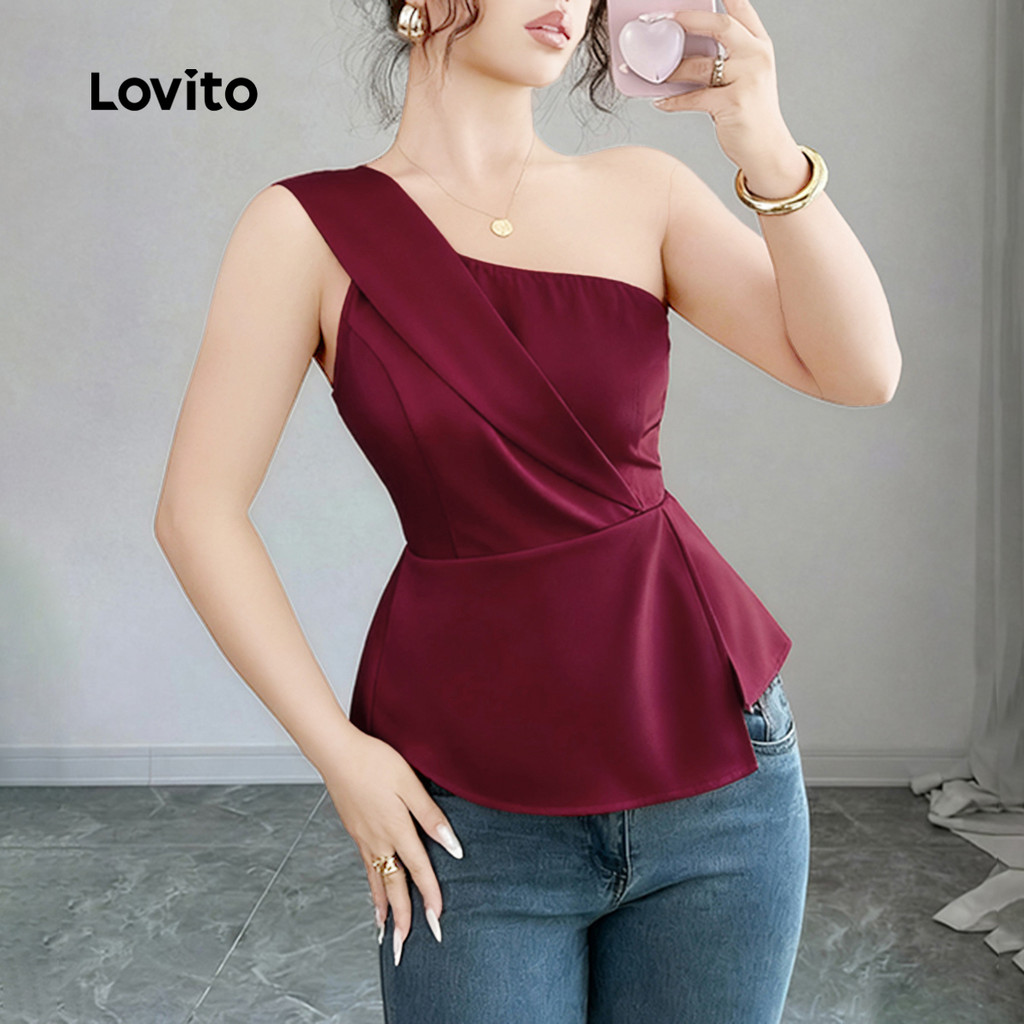 Lovito Blusa Casual De Festa Com Fenda Assimétrica E Franzida Na Cor Bordô Ideal Para Primavera/verão L155AD298