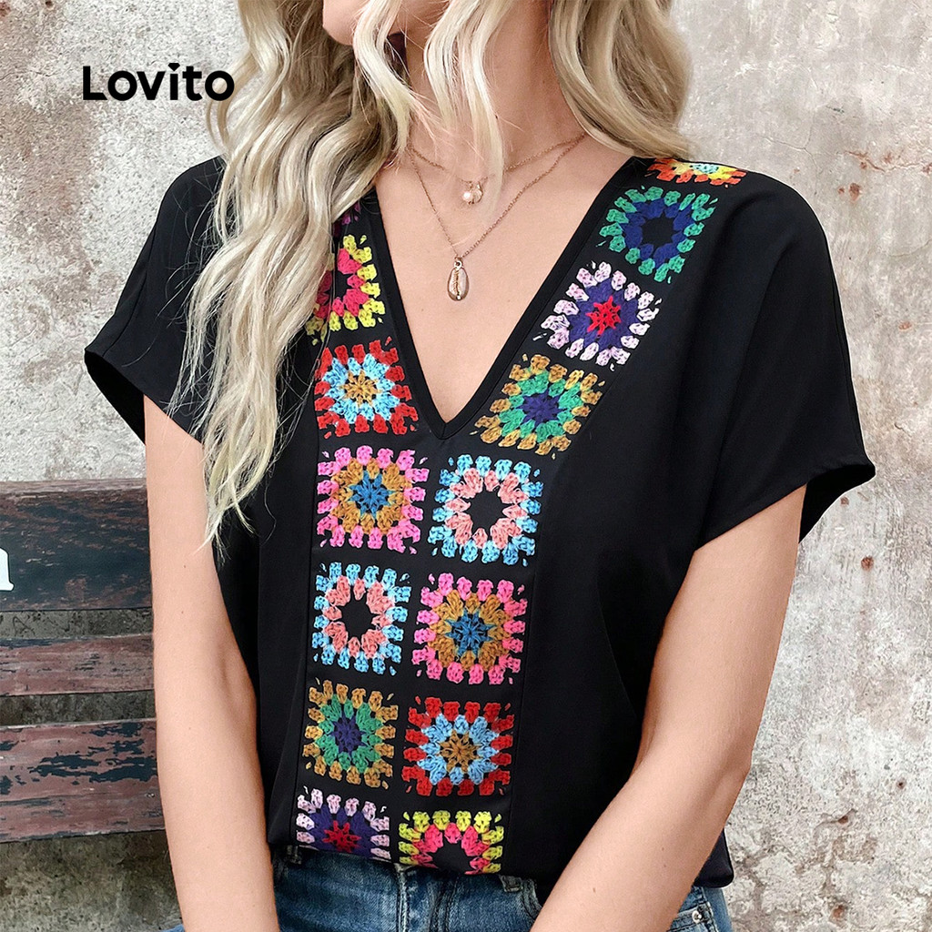 ✅DESTAQUES -❤️Costura de tecido -❤️estilo nacional -❤️Padrão -❤️Macio e confortável -❤️Primavera e verão ✅DESCRIÇÕES Estampa / Padrão:Estampado tribal Estilo:Casual Tamanho Plus:Não Material:Poliéster Composição:100% poliéster Tipo de modelagem: corte regular Transparência:Não Esticar:Não estendido Feito na China ✅O PACOTE INCLUI 1XBlusa ✅INTRODUÇÃO LOVITO A Lovito é uma marca em crescimento que acredita no poder das meninas. Estamos comprometidos em oferecer opções de roupas fashion e acessíveis, para todos os estilos, necessidades e identidades. Acreditamos que a moda deve ser divertida, liberadora e fazer você se sentir incrível. Afinal, o melhor acessório para qualquer look é a autoconfiança! ✅NOTAS DE COMPRA Antes de comprar, dê uma olhadinha na tabela de medidas disponível no site. Lembre-se de que, por serem feitas manualmente, as medidas podem variar de 1 a 2 cm. As cores dos produtos também podem ter pequenas diferenças em relação às fotos, dependendo da iluminação e das configurações do seu dispositivo. Siga nossa loja e conheça novos itens e as melhores ofertas para você!! Se você tiver alguma dúvida, converse conosco e responderemos o mais rápido possível.😊