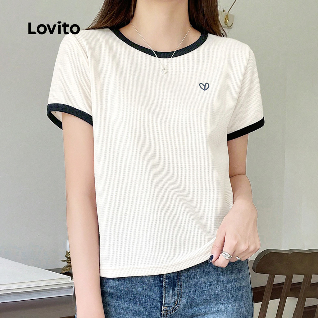 ✅DESTAQUES -❤️Colorblock -❤️Adeus e confortáveis da pele -❤️Primavera e verão ✅DESCRIÇÕES Estampa / Padrão:Plano Estilo:Casual Tamanho Plus:Não Material:Poliéster Composição:95% Poliéster + 5% Elastano Tipo de modelagem: ajuste regular Transparência:Não Esticar:Alongamento Médio Feito na China ✅O PACOTE INCLUI 1XCamiseta ✅INTRODUÇÃO LOVITO A Lovito é uma marca em crescimento que acredita no poder das meninas. Estamos comprometidos em oferecer opções de roupas fashion e acessíveis, para todos os estilos, necessidades e identidades. Acreditamos que a moda deve ser divertida, liberadora e fazer você se sentir incrível. Afinal, o melhor acessório para qualquer look é a autoconfiança! ✅NOTAS DE COMPRA Antes de comprar, dê uma olhadinha na tabela de medidas disponível no site. Lembre-se de que, por serem feitas manualmente, as medidas podem variar de 1 a 2 cm. As cores dos produtos também podem ter pequenas diferenças em relação às fotos, dependendo da iluminação e das configurações do seu dispositivo. Siga nossa loja e conheça novos itens e as melhores ofertas para você!! Se você tiver alguma dúvida, converse conosco e responderemos o mais rápido possível.😊