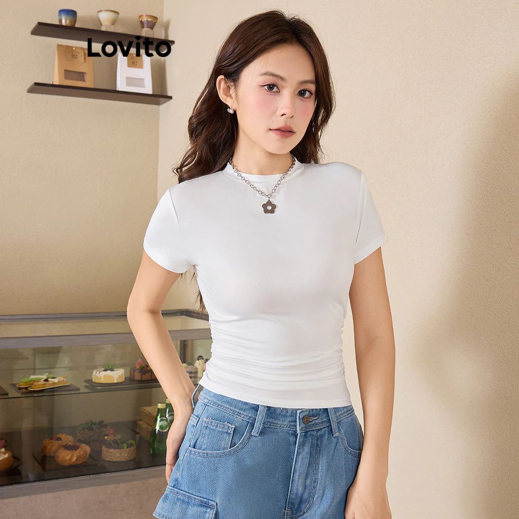 ✅DESTAQUES -❤️Fresco e confortável -❤️Toque macio ✅DESCRIÇÕES do produto Estampa: liso Estilo do estilo: Casual Coleção: Ano todo Tamanho Plus: Não Composição: 95%Poliéster+5%Elastano Tipo de Modelagem: Slim Transparência: Não Elasticidade: Baixa Região de origem: Brasil ✅REFERÊNCIA DE MODELAGEM A modelo está vestindo: P Altura: 165 cm Peso: 55 kg Busto: 88 cm Cintura: 68 cm Quadris: 93 cm ✅O PACOTE INCLUI 1x Camiseta ✅INTRODUÇÃO À LOVITO A Lovito é uma marca emergente que acredita no poder feminino, comprometida em oferecer opções de roupas elegantes e acessíveis para diferentes estilos, necessidades e identidades. Acreditamos que a moda deve ser divertida, libertadora e fazer você se sentir bem. Afinal, o melhor acessório para qualquer look é a autoconfiança. ✅NOTAS DE COMPRA Compare suas medidas com nossa tabela disponível no site. Lembre-se de que, por serem feitas manualmente, as medidas podem variar de 1 a 2 cm. As cores dos produtos também podem ter pequenas diferenças em relação às fotos, dependendo da iluminação e das configurações do seu dispositivo. Siga nossa loja e conheça novos itens e as melhores ofertas para você!! Se você tiver alguma dúvida, entre em contato conosco e responderemos o mais rápido possível.😊