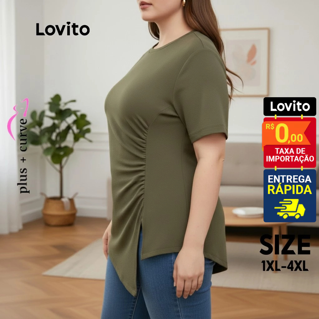 ✅DESTAQUES -❤️Fresca e confortável ✅DESCRIÇÃO Estampa: Lisa Estilo: Casual Tamanhos Plus Size: Sim Composição: 96% Poliéster 4% Elastano Modelagem: Regular Transparência: Não Elasticidade: Média Origem: Brasil ✅O PACOTE INCLUI 1 Blusa ✅APRESENTAÇÃO DA LOVITO A Lovito é uma marca emergente que acredita no poder feminino, comprometida em oferecer opções de roupas modernas e acessíveis para diferentes estilos, necessidades e identidades. Acreditamos que a moda deve ser divertida, libertadora e fazer você se sentir bem. Afinal, o melhor acessório para qualquer look é a autoconfiança. ✅NOTAS DE COMPRA Compare suas medidas com nossa tabela disponível no site. Lembre-se de que, por serem feitas manualmente, as medidas podem variar de 1 a 2 cm. As cores dos produtos também podem ter pequenas diferenças em relação às fotos, dependendo da iluminação e das configurações do seu dispositivo. Siga nossa loja e conheça novos itens e as melhores ofertas para você!! Se você tiver alguma dúvida, converse conosco e responderemos o mais rápido possível.😊