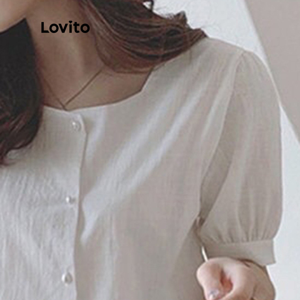 Lovito Blusa Casual Lisa com Botões Frontais e Decote Quadrado para Mulheres LNA04158 (Branco)