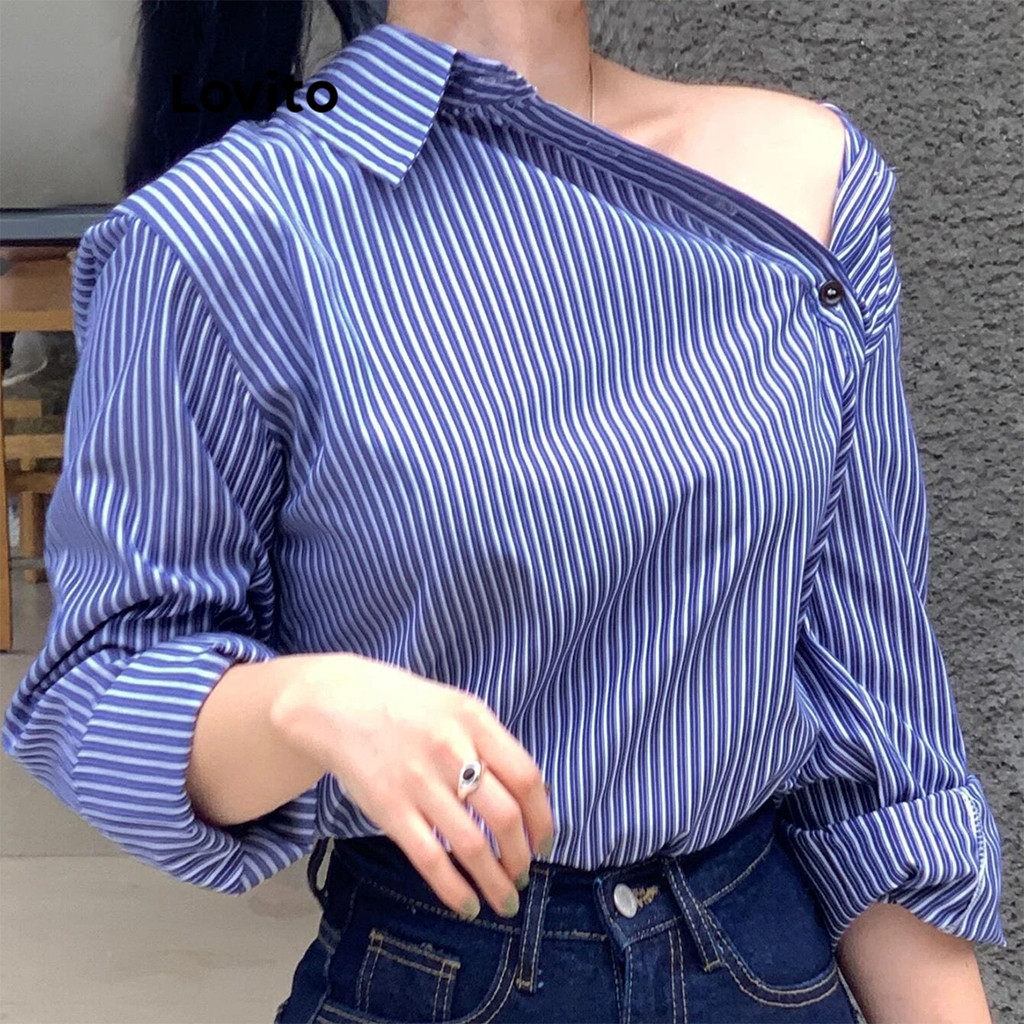 Lovito Blusa Casual Listrada Com Botões Assimétricos Para Mulheres L99ED1021