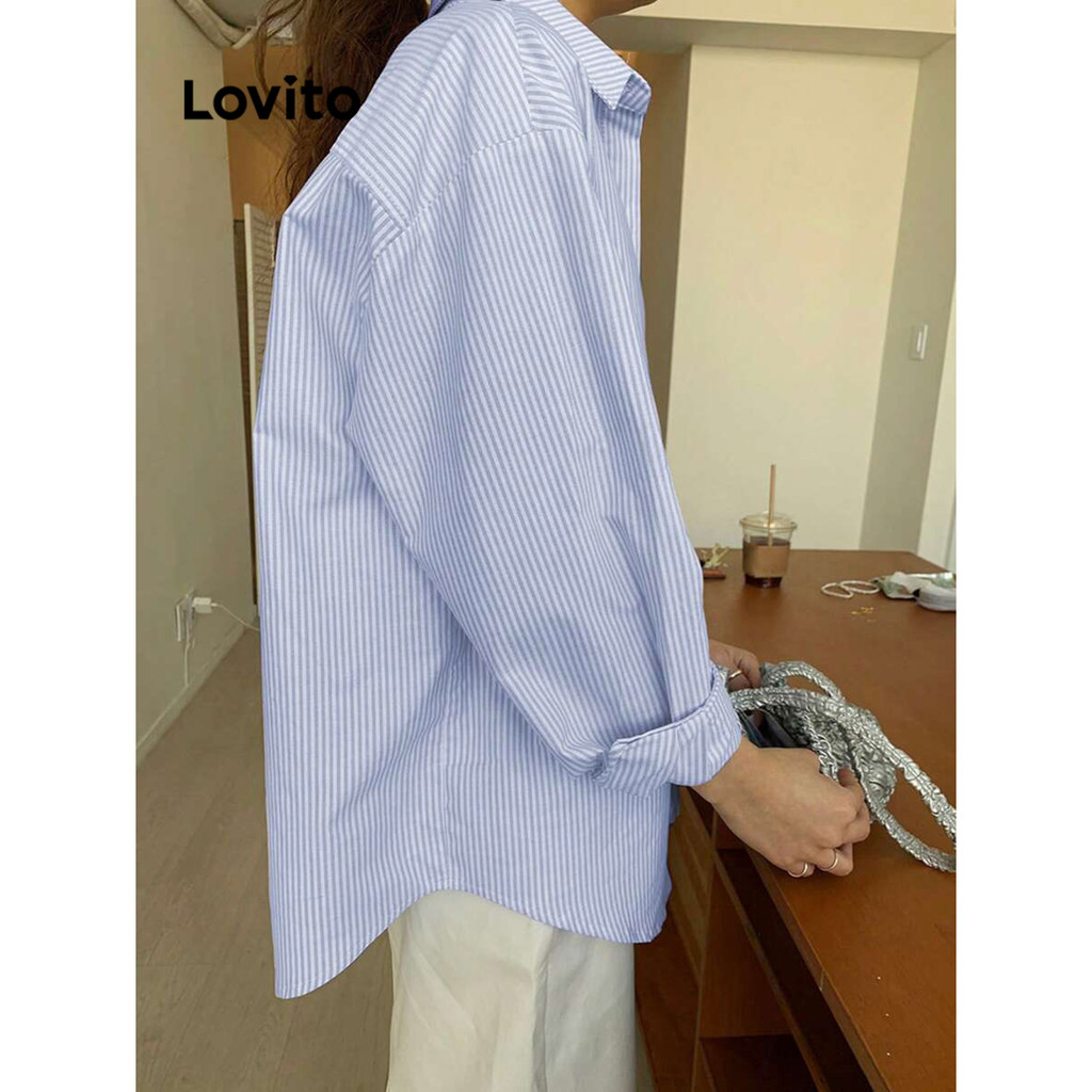 Lovito Blusa Casual Listrada Com Botões Drapeados Para Mulheres L90AD060 (Multicolorido)
