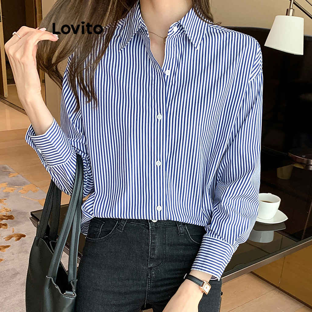 ✅DESTAQUES -❤️Manga comprida -❤️Botão ✅DESCRIÇÕES Estampa: Listrada Estilo: Casual Plus Size: Não Material: Poliéster Composição: 100% Poliéster Tipo de Caimento: Regular Transparente: Não Elasticidade: Baixa Região de Origem: China Continental ✅REFERÊNCIA DE MODELAGEM A modelo está vestindo: P Altura: 165 cm Peso: 55 kg Busto: 88 cm Cintura: 68 cm Quadris: 93 cm ✅O PACOTE INCLUI 1X Blusa ✅APRESENTAÇÃO LOVITO Lovito é uma marca emergente que acredita no poder feminino, comprometida em fornecer opções de roupas modernas e acessíveis para diferentes estilos, necessidades e identidades. Acreditamos que a moda deve ser divertida, libertadora e fazer você se sentir bem. Afinal, o melhor acessório para qualquer look é a autoconfiança. ✅OBSERVAÇÕES DE COMPRA Por favor, consulte a sua altura e a tabela de tamanhos antes de comprar. Há 2-3% de diferença de acordo com a medição manual. Todas as fotos de produtos nesta loja são 100% reais. Devido a diferentes luzes e telas, uma sutil diferença de cor e um erro real são normais. Siga nossa loja e descubra novos itens e as melhores ofertas para você!! ⭐️As encomendas serão enviadas em até 48 horas ⭐️FRETE GRÁTIS DISPONÍVEL ⭐️Todos os itens estão em estoque e são NOVOS Se você tiver alguma dúvida, fale conosco e responderemos o mais breve possível.😊