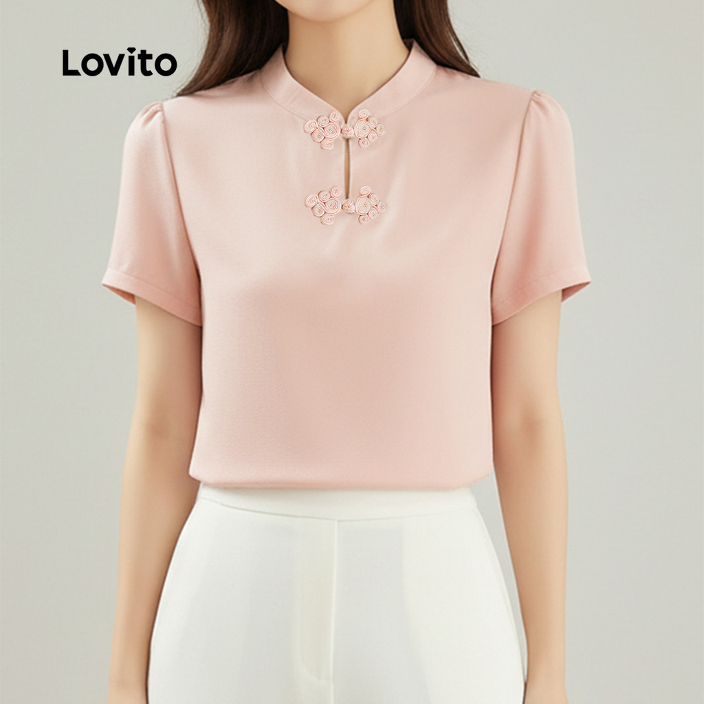 Lovito Blusa Casual Nova Estilo Chinês Primavera/verão Blusa Rosa para Mulheres LK2ED210