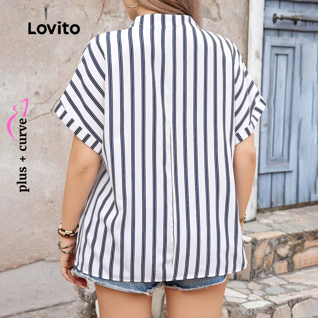 Lovito Blusa Casual Plus Size Curva Listrada Com Botões Blusa Verão/primavera Para Mulheres LBL19291