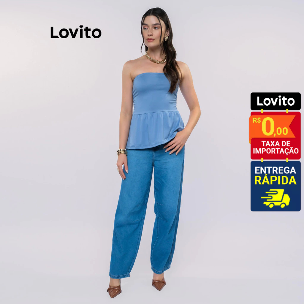 Lovito Blusa Casual Sem Mangas Azul Moda Feminina com Babado LB977BRL1007