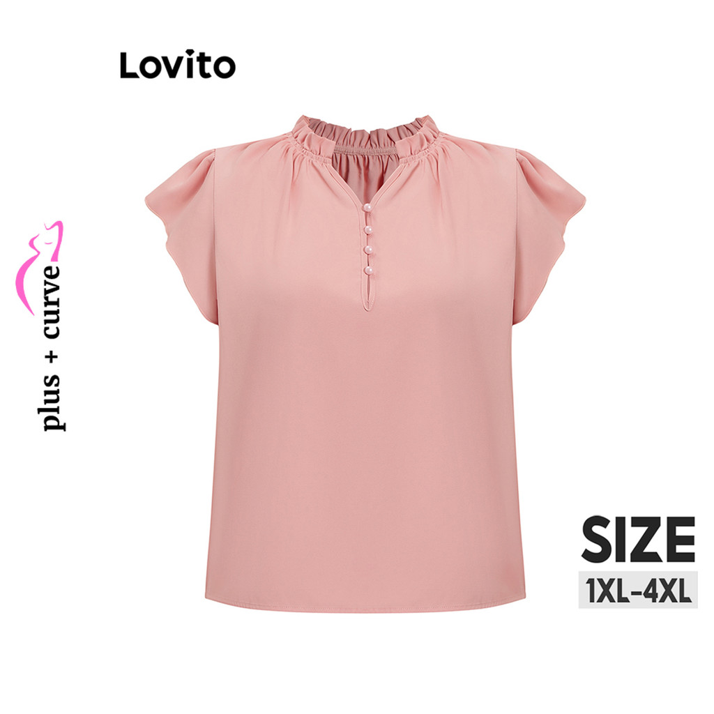 Lovito Blusa Curva Plus Size Elegante Com Botão Liso E Acabamento Em Alface Para Mulheres LBL08199 (Multicolorido)