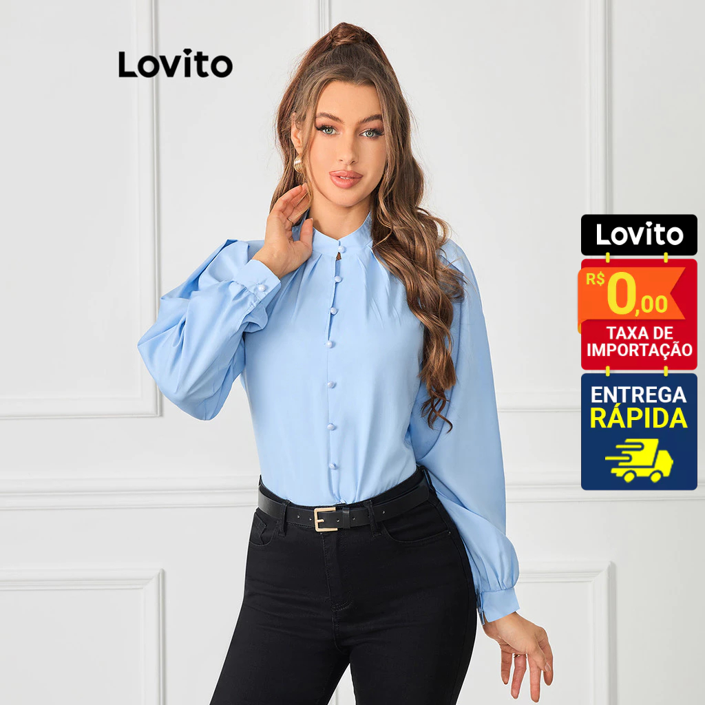 ✅DESTAQUES -❤️Frente Do Botão -❤️Pregueado -❤️Sentimento Suave Da Mão ✅DESCRIÇÕES Padrão: Simples Estilo: Elegante Mais Tamanho: Não Material: Poliéster Composição: 100%Poliéster Tipo Fit: Ajuste Regular Transparente: Não Esticamento: Não Esticar Região Da Origem: Brasil ✅PACOTE INCLUI 1X Blusa ✅APRESENTAÇÃO DO LOVITO Lovito é uma marca emergente que acredita no poder das meninas, comprometida com a oferta de escolhas de roupas elegantes e acessíveis para diferentes estilos, necessidades e identidades. Nós acreditamos que a moda deve ser divertida, liberadora e você sentemos ótimos. Depois de todos, o melhor acessório para qualquer aspecto é de autoconfiança. ✅NOTAS DE COMPRA Compare suas medidas com nossa tabela disponível no site. Lembre-se de que, por serem feitas manualmente, as medidas podem variar de 1 a 2 cm. As cores dos produtos também podem ter pequenas diferenças em relação às fotos, dependendo da iluminação e das configurações do seu dispositivo. Siga nossa loja e conheça novos itens e as melhores ofertas para você!! Se você tiver alguma dúvida, converse conosco e responderemos o mais rápido possível.😊