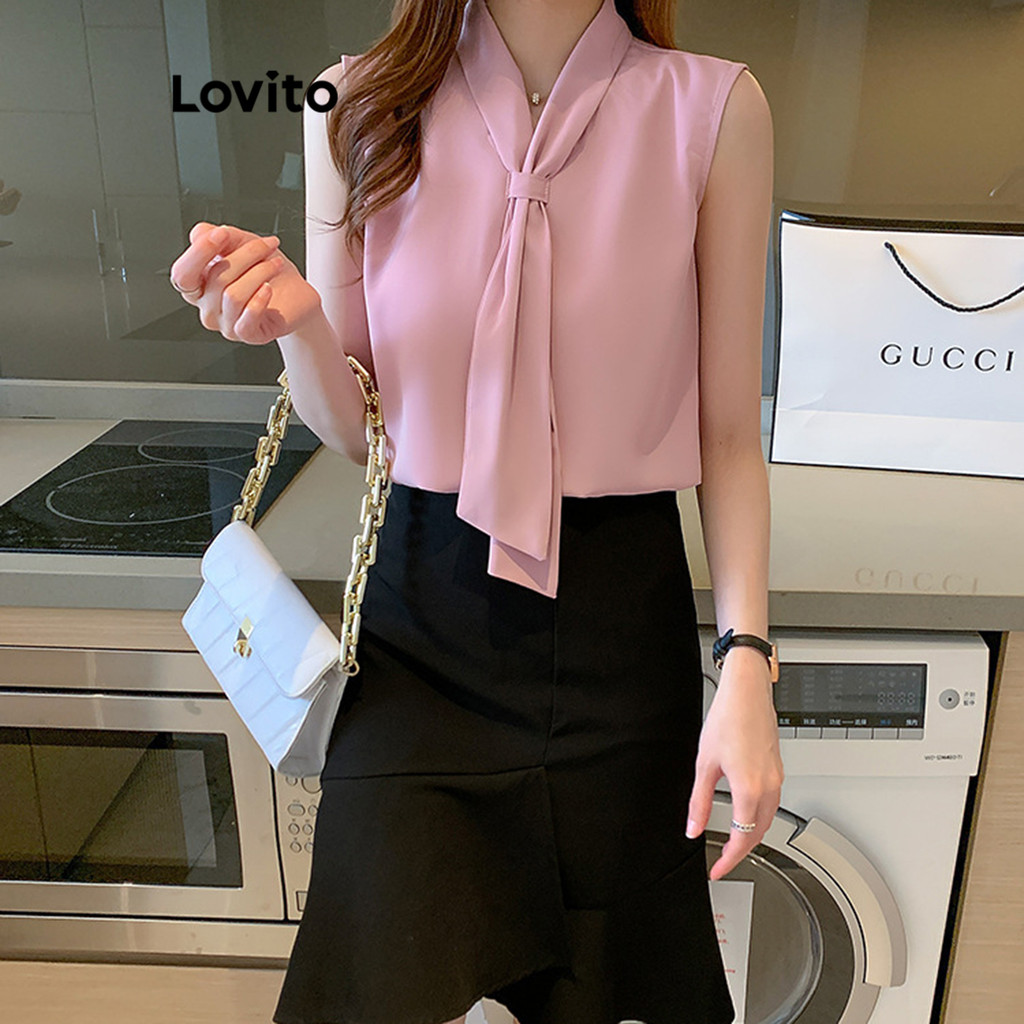 Lovito Blusa Elegante Blusa Lisa Com Cadarço Para Mulheres LNL43115 (Multicolorido)